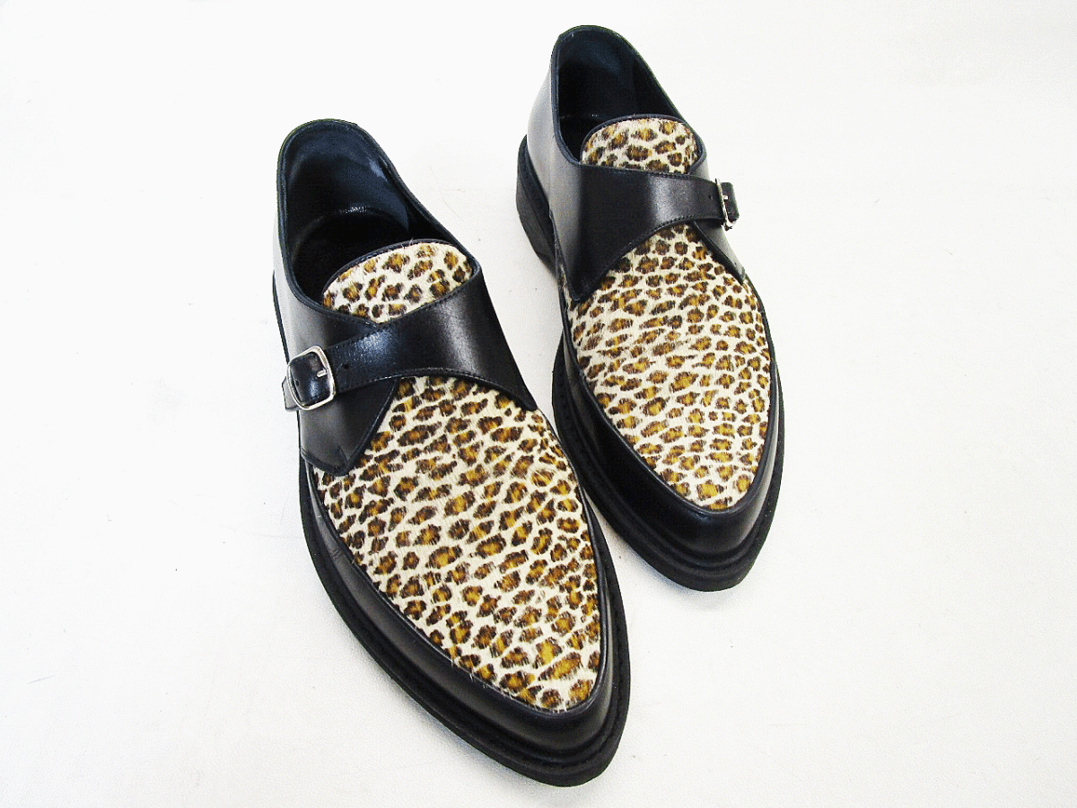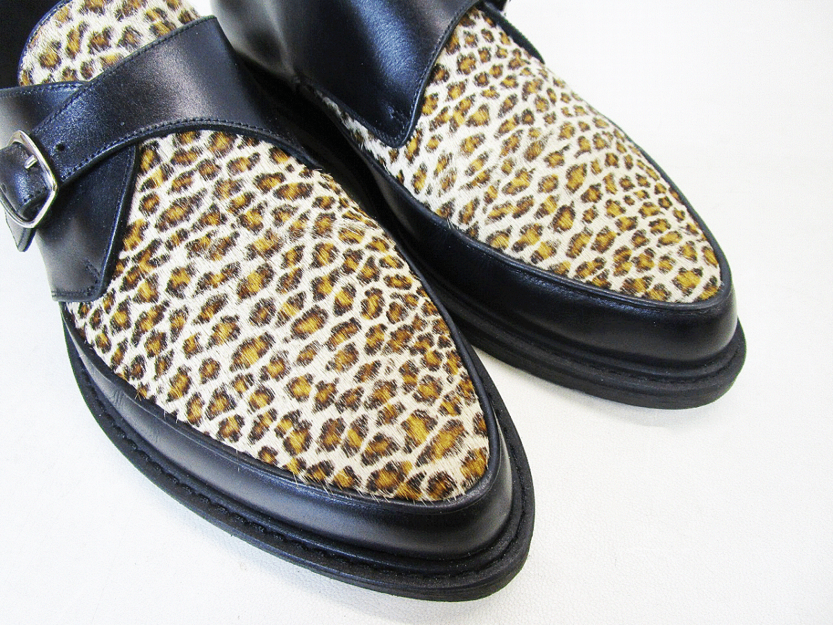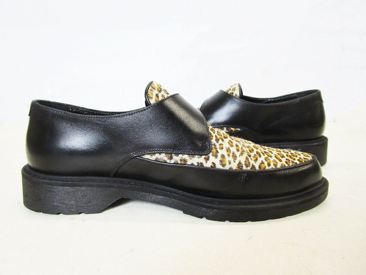 (D) CELINE HOMME セリーヌ 19AW ハラコ切替 クリーパーズ バックルシューズ 39.5 ブラック レザー レオパード