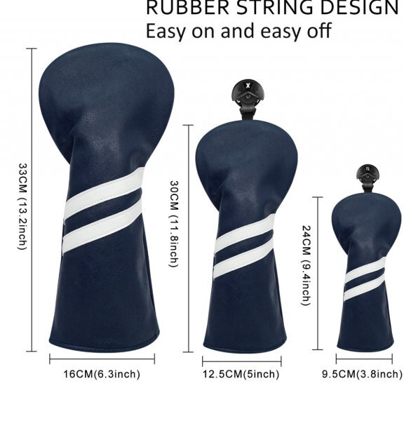 【サイズ】 ドライバー用: 33cmx16cm、フェアウェイウッド用: 30cmx12.5cm、ユーティリティ用: 24cmx9.5cm。