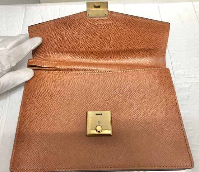 renoma レノマ クラッチバッグ セカンドバッグ 金具 シボ革 茶 ブラウン