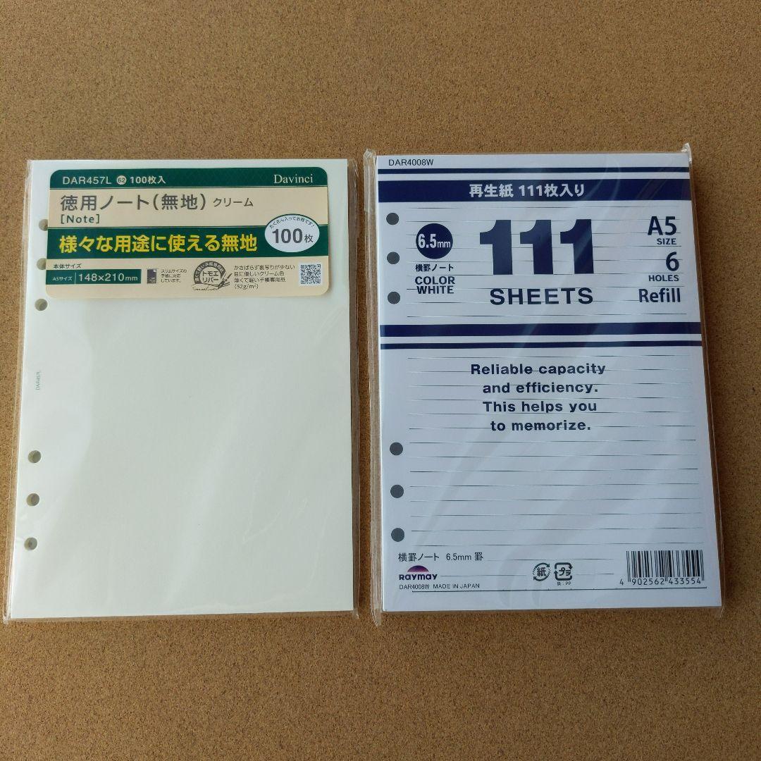 新品・A5手帳リフィル・DAR4008W+DAR457L ◆システム手帳/レイメイ/ダヴィンチ/日用品/文具