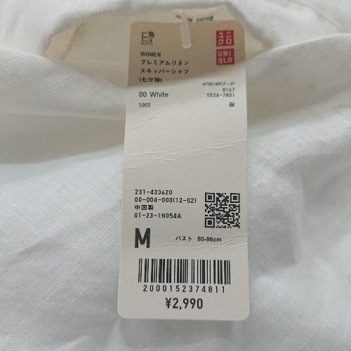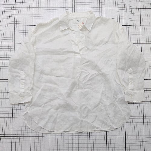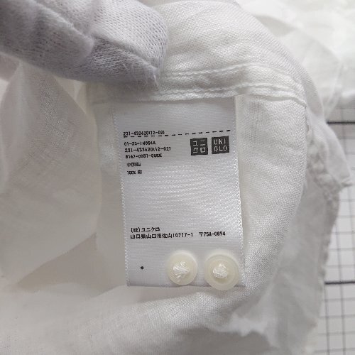 ◇ ⊂ 美品 UNIQLO ユニクロ シンプル系 長袖 プレミアムリネンスキッパーシャツ サイズM ホワイト系 レディース E