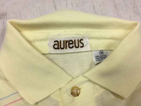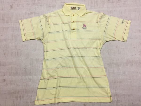 aureus カルアコイ リゾート Kaluakoi Resort 国産レトロ オールド 古着 ボーダー 半袖ポロシャツ メンズ 日本製 M 黄色