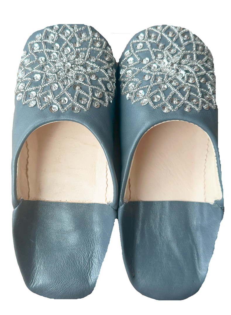 当店のバブーシュはすべてモロッコの職人さんが手作りで作製したものです。工場で作った大量コピー製品ではないので小さな傷・汚れ、染色の際のむら、ボンドのはみだし、ボールペンの跡、若干のサイズの誤差、同じデザインでも左右非対称、入荷時によって画像とのデザインやスパンコールの色の違いなどのハンドメイド感についてはご了承のうえ、ご注文をお願いいたします。上記のことを踏まえての価格設定となっております。