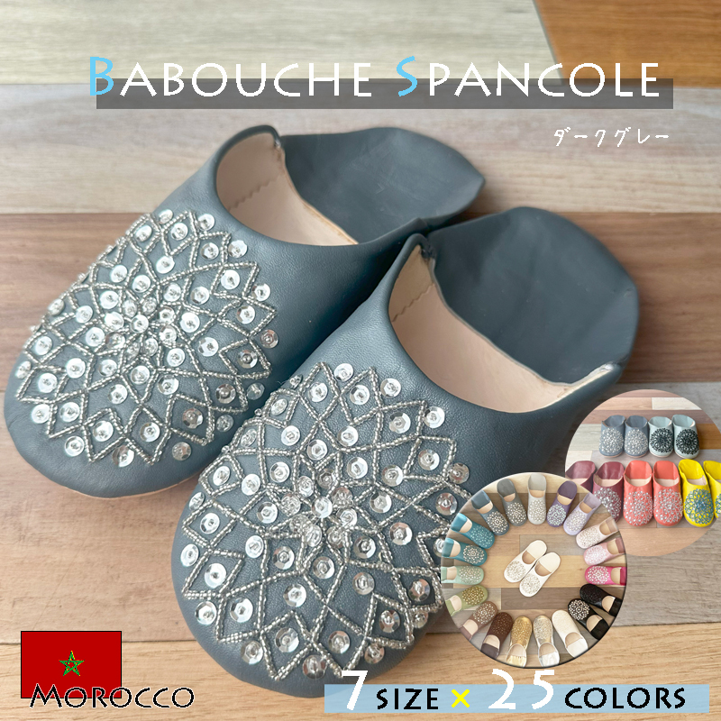 《23.5cm~24cm×ダークグレー》モロッコ バブーシュ スリッパ ルームシューズ 新築祝い 在宅ワーク オフィス 北欧