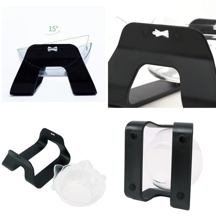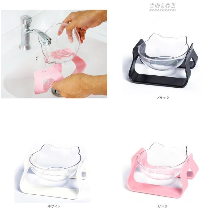| 商品説明 | ・ネコちゃんの食べやすい角度に調節可能!可愛くてスタイリッシュなペット用フードボウル♪ ・透明なボウルが宙に浮かんだようなデザインは、外観がオシャレなだけでなく、ネコちゃんが大きく首を傾けなくても食べやすいように工夫された形状。シニアのネコちゃんや病気で治療中の愛猫にもぴったり。 ・フードボウルの角度は、水平から約15度前に傾けた状態に調節ができ、食べやすい角度をキープ!フードの残りが少なくなっても、最後の1粒まで完食できる♪ ・台座裏面の滑り止めが床面をしっかりグリップするため、食べている最中にボウルが動きにくく安定感もばっちり。 ・ボウル部分は簡単に取り外せて丸洗いが可能。軽量プラスチック素材なので、スタンド部分のお手入れもラクラク! ・ボウルにネコ耳がついたデザインがほのぼのキュート♪ウォーター用とフード用、色違いで揃えても可愛い。 ・ネコちゃんだけでなく、室内小型犬用のフードボウルとしてもオススメ。 |