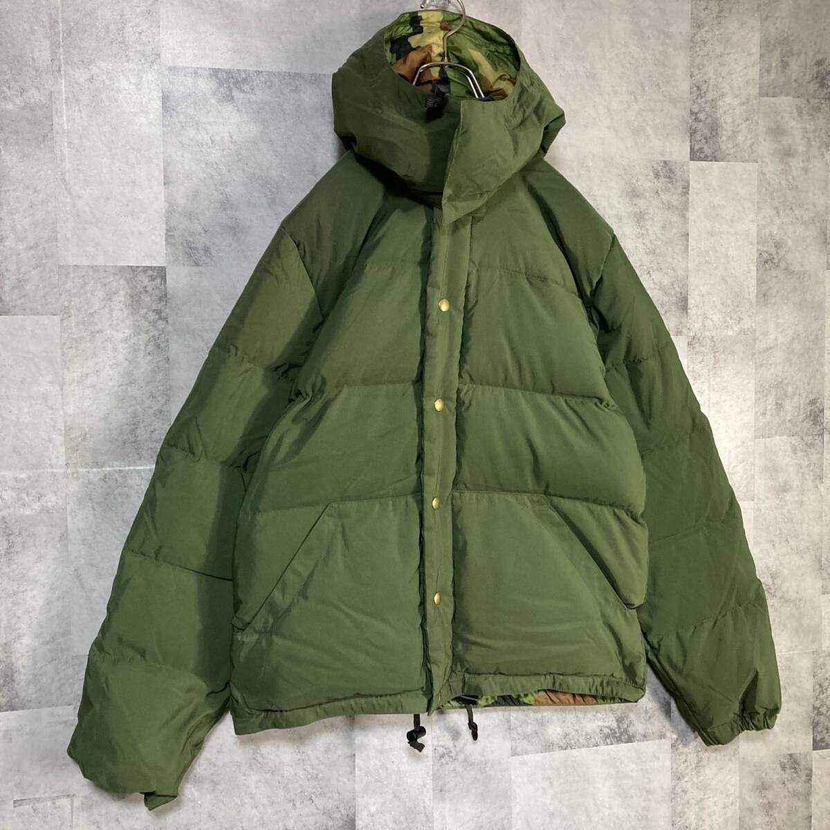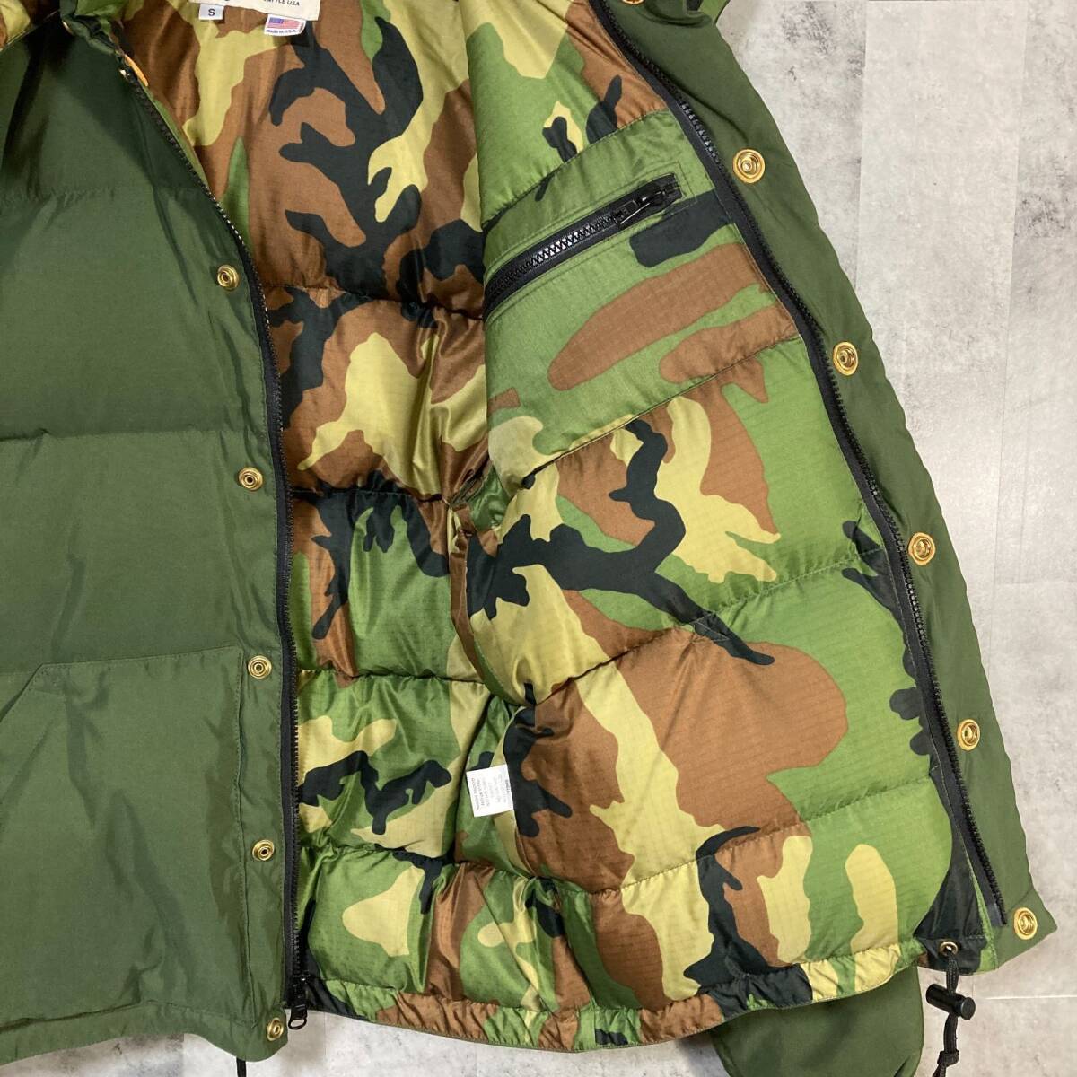 USA製 Crescent Down Works クレセントダウンワークス フーディー ダウンジャケット 60/40 クロス オリーブ S 裏地 迷彩柄 ダウンセーター