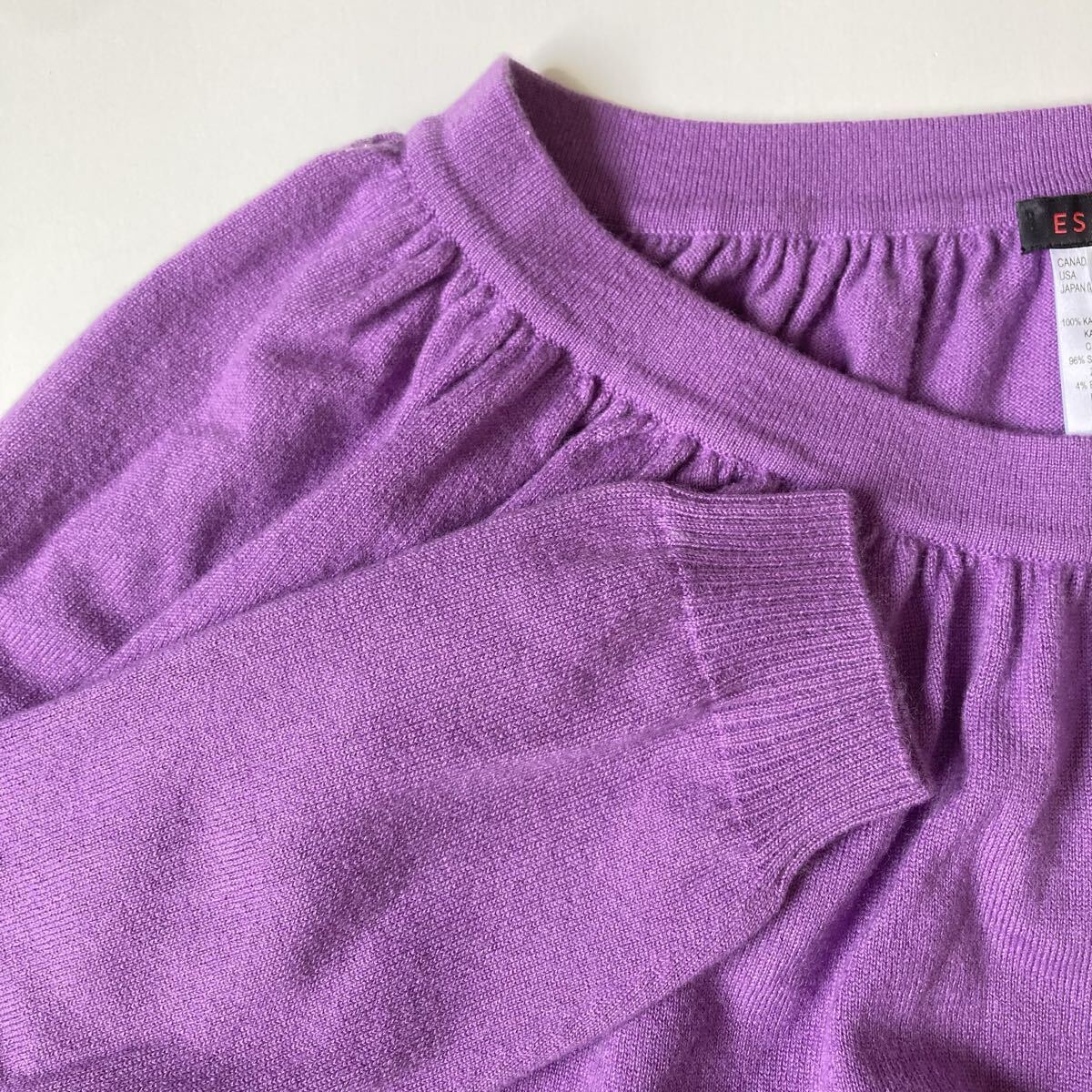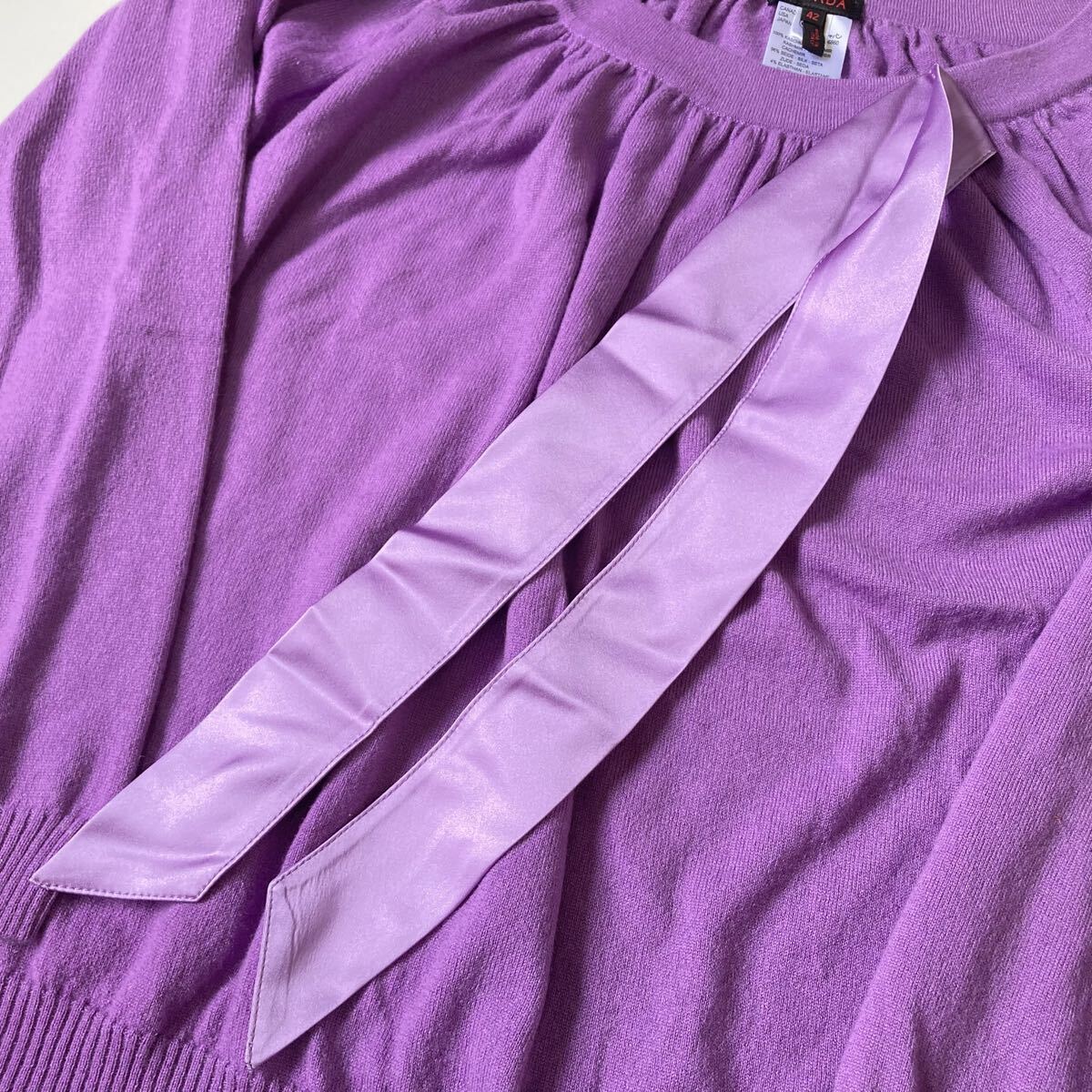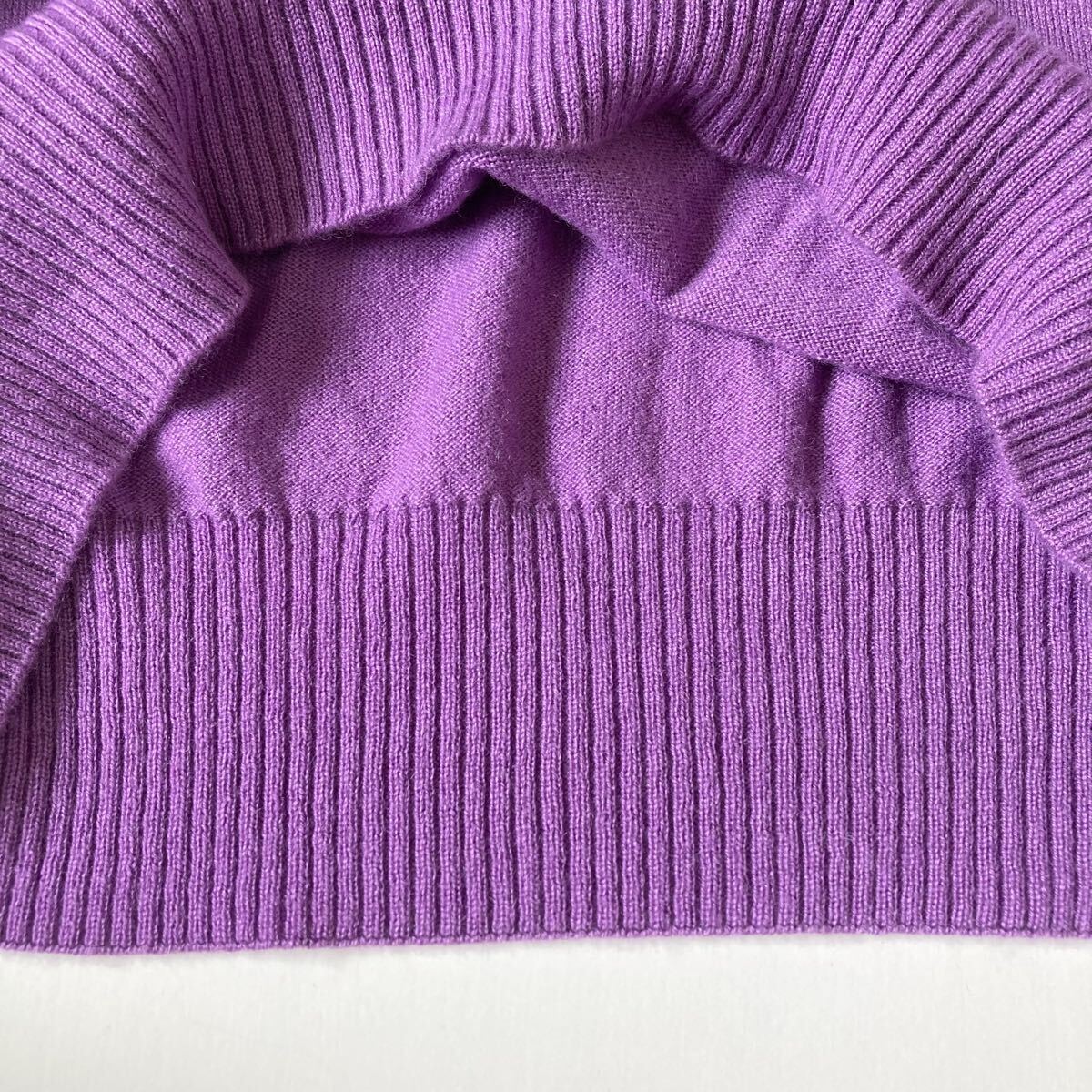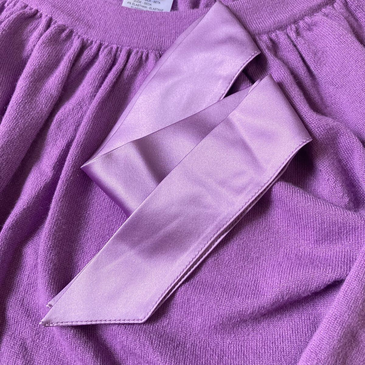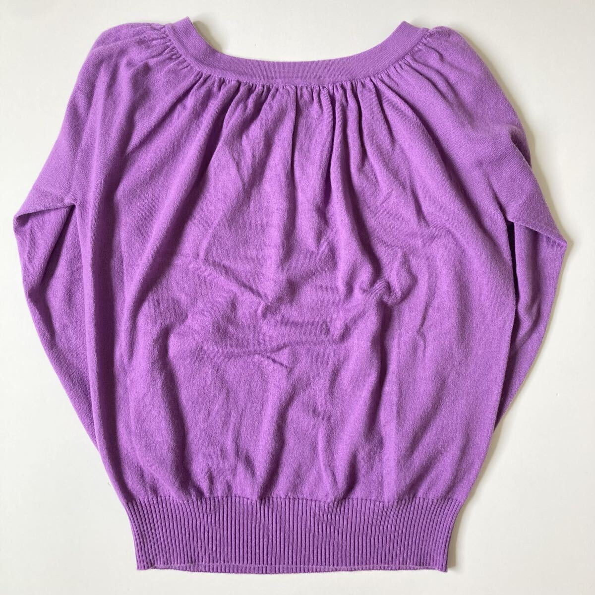 カラーは華やかで上品なラベンダー。柔らかく肌触りの良いニットで、女性らしいデザインです。