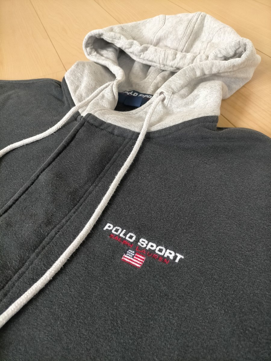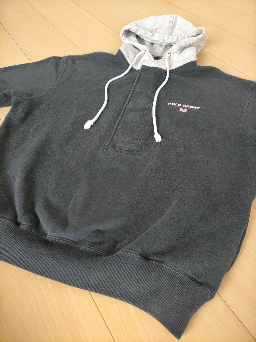 90s-00s POLO SPORT RALPH LAUREN 2トーンカラー ハーフジップ 星条旗ロゴ スウェットパーカーです。