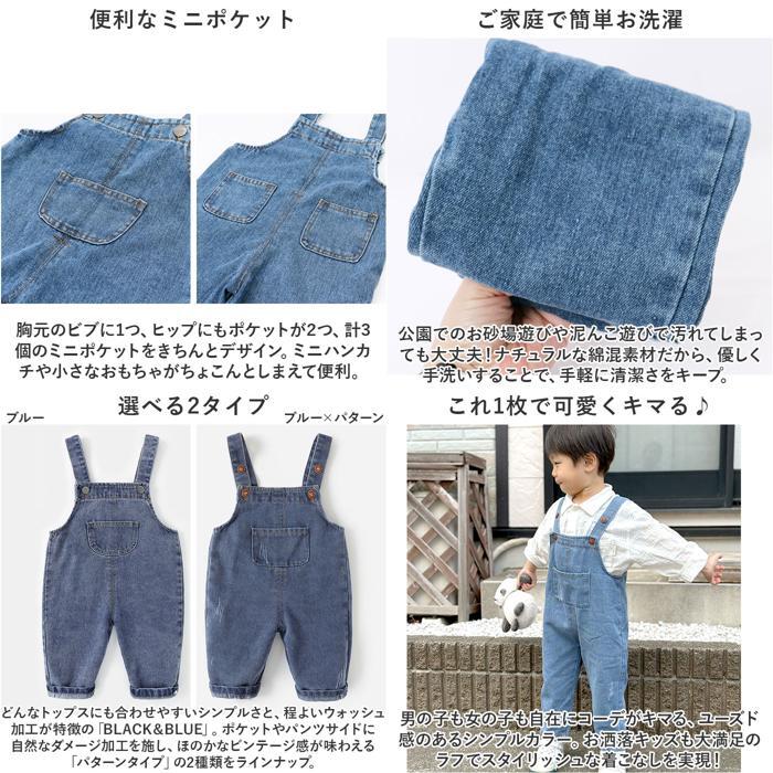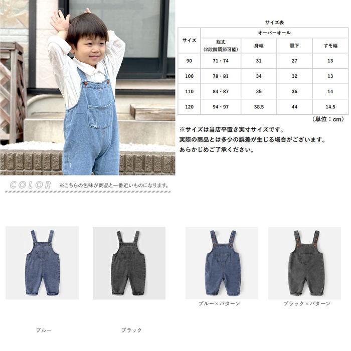商品説明 | ・・これ1枚で、ワイルド&キュートなキッズスタイルが完成!ラフなデニム素材が肌に心地よい「キッズ デニムオーバーオール」が新登場! ・【スポッと装着スムーズ】 ・スポッと両足を通したらビブと肩ヒモを持ち上げ、肩口のボタンを留めるだけの簡単装着!サッと着られてお出掛け前のお着替えがスムーズ♪ ・【ボタンで2段階調節】 ・肩ヒモはビブのボタンホールで2段階に調整可能。キッズの身体の成長に合わせて、長く使えるのが嬉しいポイント。 ・【足さばきのよいシルエット】 ・くったりと柔らかなデニムの素材感と、パンツの裾をタイトにしぼった足さばきのよいシルエットで、動きやすさも抜群。活発に走り回るキッズにぴったり! ・【ロールアップで可愛いくアレンジ】 ・ズボンの裾をロールアップすればサイズ調節ができるので、少し大きめサイズでも安心。男の子も女の子も着こなし自在。 ・【便利なミニポケット】 ・胸元のビブに1つ、ヒップにもポケットが2つ、計3個のミニポケットをきちんとデザイン。ミニハンカチや小さなおもちゃがちょこんとしまえて便利。 ・【ご家庭で簡単お洗濯】 ・公園でのお砂場遊びや泥んこ遊びで汚れてしまっても大丈夫!ナチュラルな綿混素材だから、優しく手洗いすることで、手軽に清潔さをキープ。 ・【選べる2タイプ】 ・どんなトップスにも合わせやすいシンプルさと、程よいウォッシュ加工が特徴の「BLACK&BLUE」。ポケットやパンツサイドに自然なダメージ加工を施し、ほのかなビンテージ感が味わえる「パターンタイプ」の2種類をラインナップ。 ・【これ1枚で可愛くキマる♪】 ・男の子も女の子も自在にコーデがキマる、ユーズド感のあるシンプルカラー。お洒落キッズも大満足のラフでスタイリッシュな着こなしを実現! |
