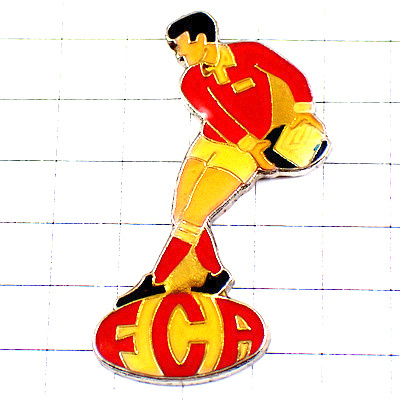 | "ピンバッジ・赤いユニフォームのラグビー選手ボール球パス"の商品説明 | |