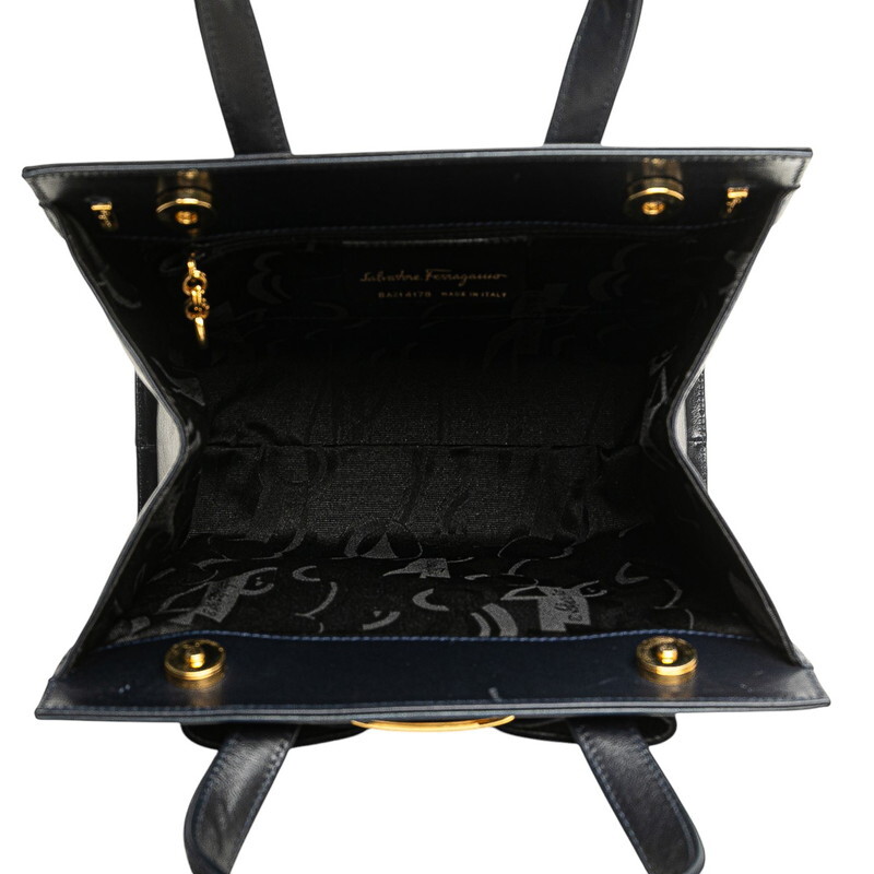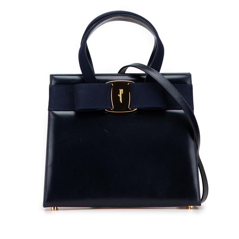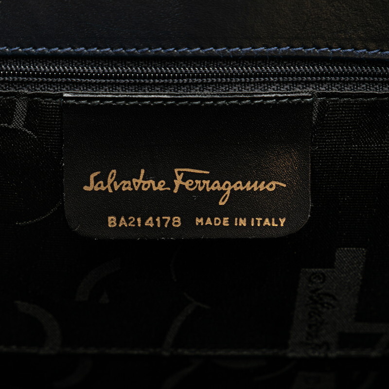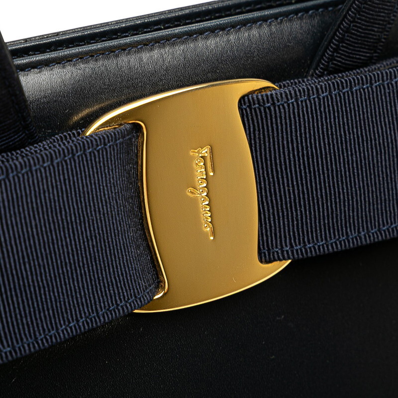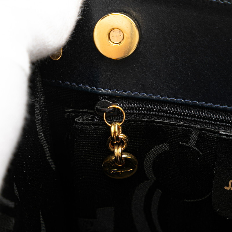 サルヴァトーレフェラガモ ヴァラリボン ハンドバッグ ショルダーバッグ 2WAY BA214178 ダークネイビー Salvatore Ferragamo 【中古】