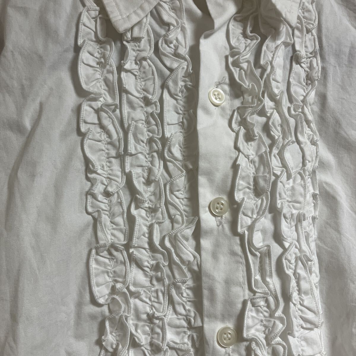 色は白、サイズは、肩幅43㎝、身幅48㎝、袖丈62㎝。