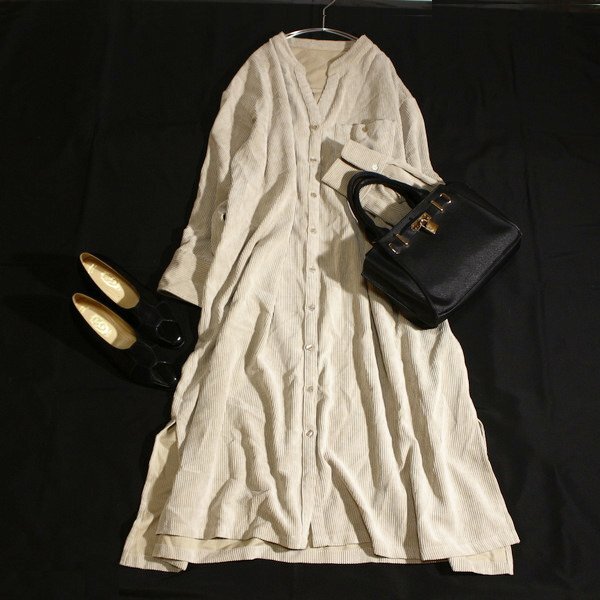 ゆったり可愛いコーデュロイのロングワンピースです。