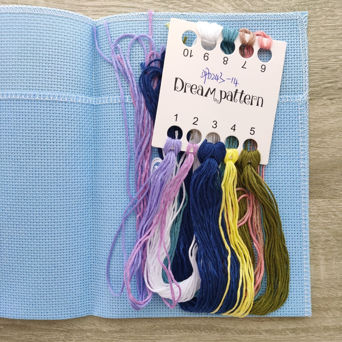 刺繍糸は余分に見積もって入っていますが、製作中もし足りなくなった場合は、ご自身でご用意ください。DMCの糸番号に対応しています。検品のため1度開封しています。