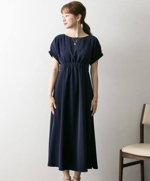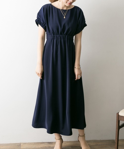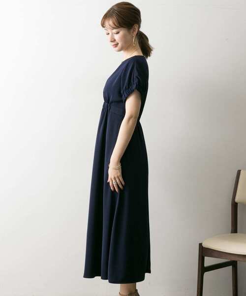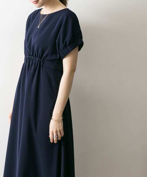 アーバンリサーチ ■ LA MAISON ウエストギャザーワンピース 紺