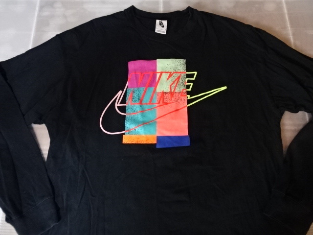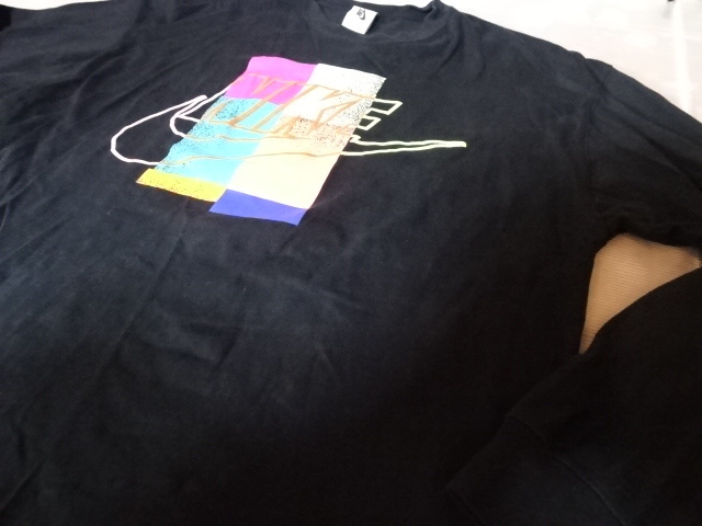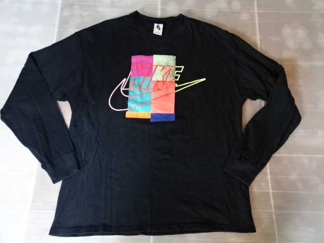 激レア USA購入 ナイキ【NIKE】社製 【AIR MAX 2】 襟元ロゴマーク カラフルロゴプリント入り 厚手ロングTシャツUS M 中古品
