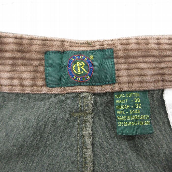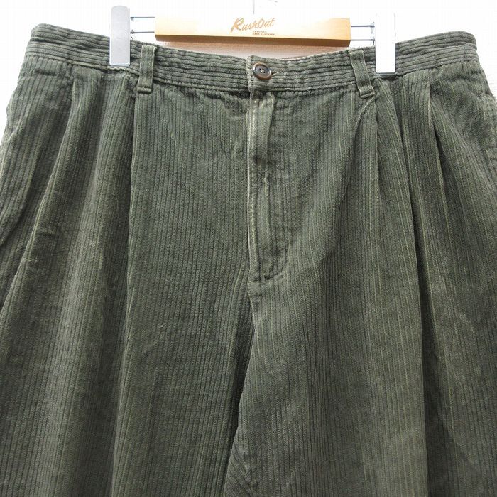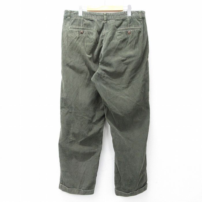 【商品名】 W38★古着 コーデュロイ パンツ メンズ 太畝 コットン 濃緑