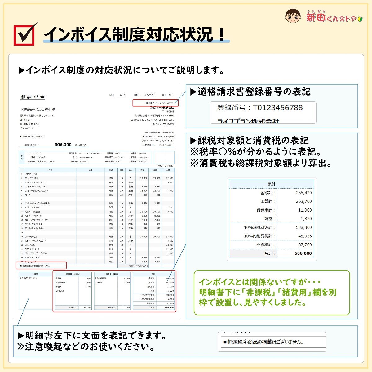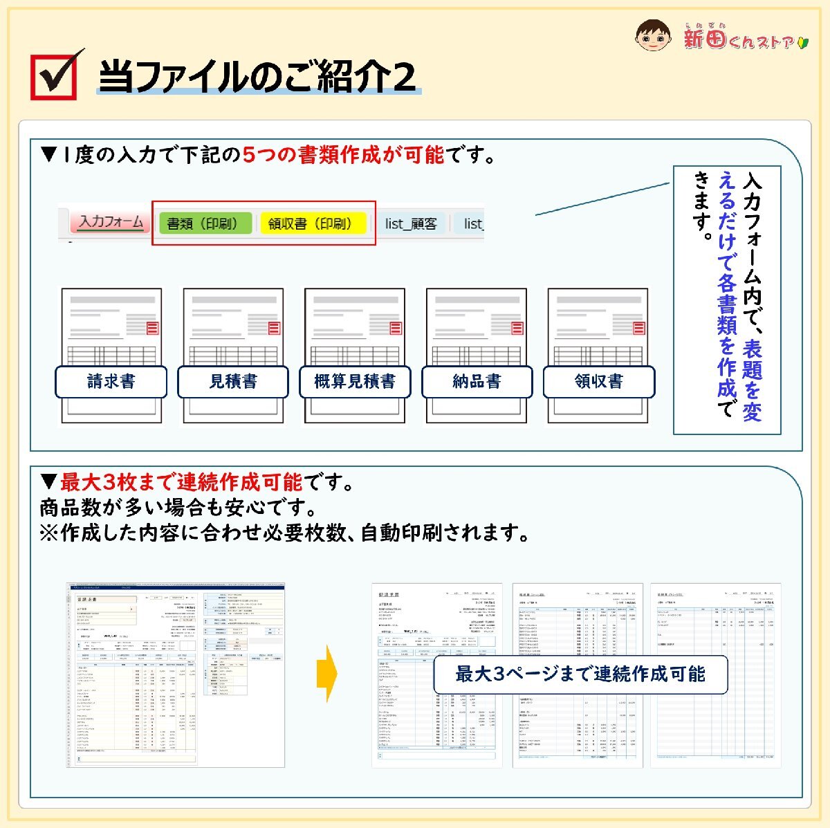 ■仕様 ・余計な機能を省きファイルをシンプル化。 ・書類作成のみに特化した商品です。 ・通常税率、非課税品に利用可能です。 ・インボイス制度(登録番号)の掲載可能。 ・データの蓄積や履歴機能はありません。 ・Windows OS のバージョン制限はございません。 |