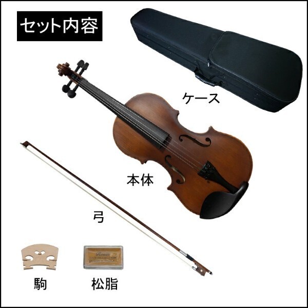 ★セット内容・・・バイオリン本体・弓・ケース・駒・松脂(松脂の容器が異なる場合あり)