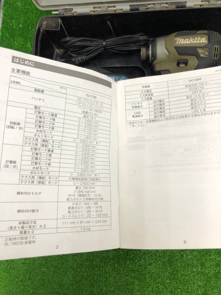 【中古品】★makita(マキタ) 18V充電式インパクトドライバ TD173DRGXO / ITB9QD6A157S