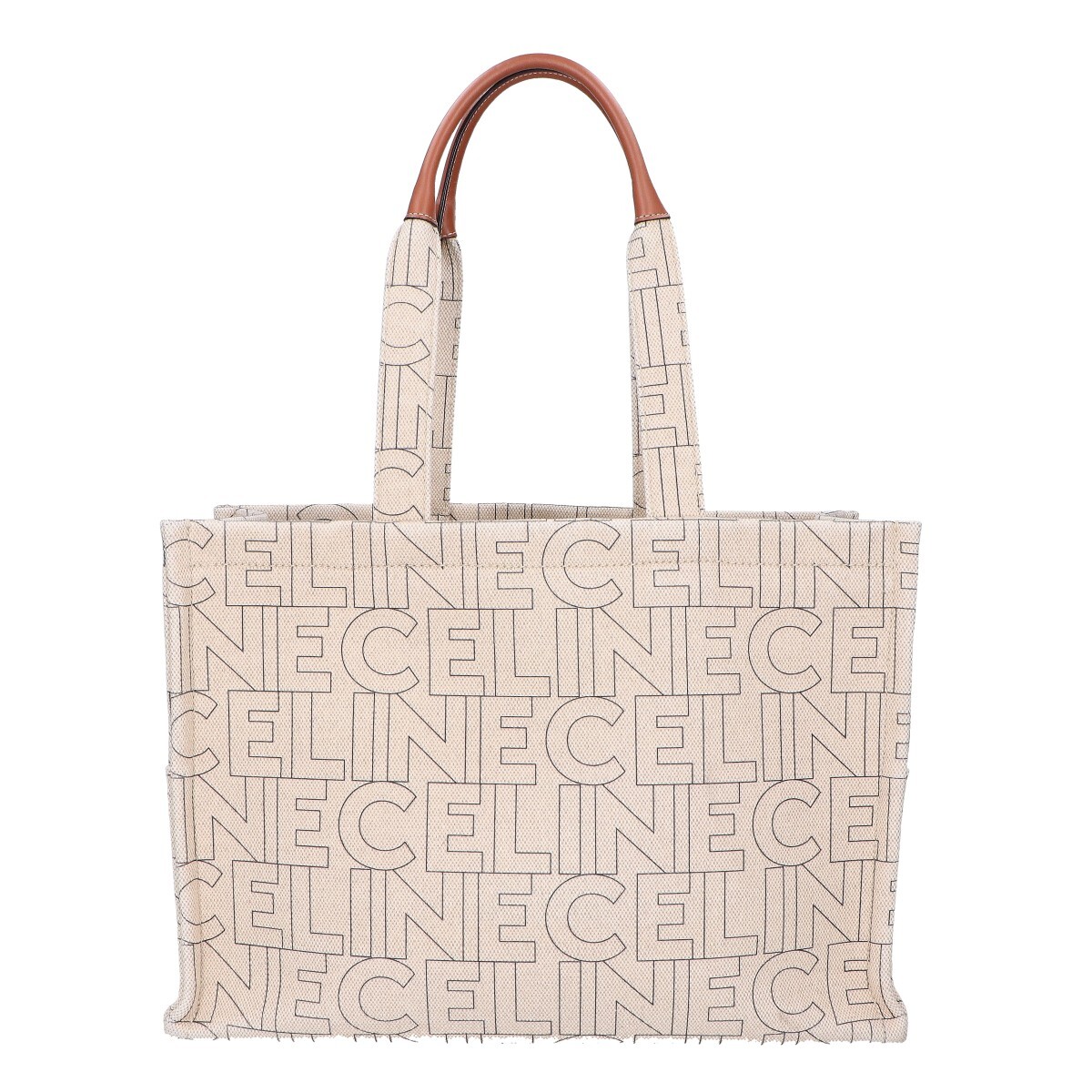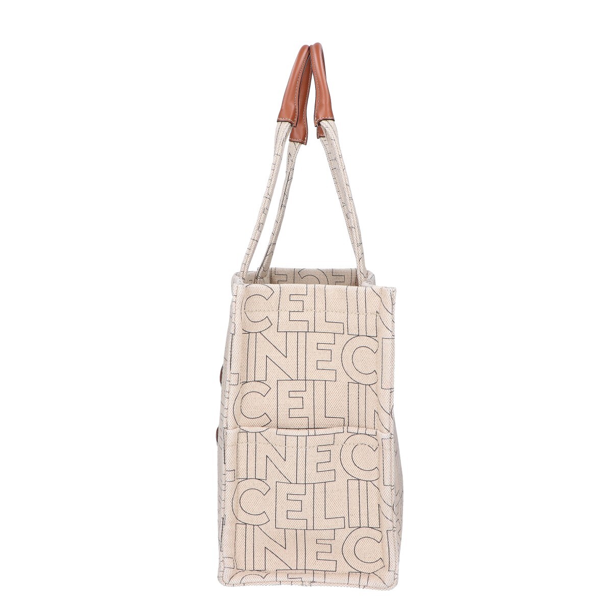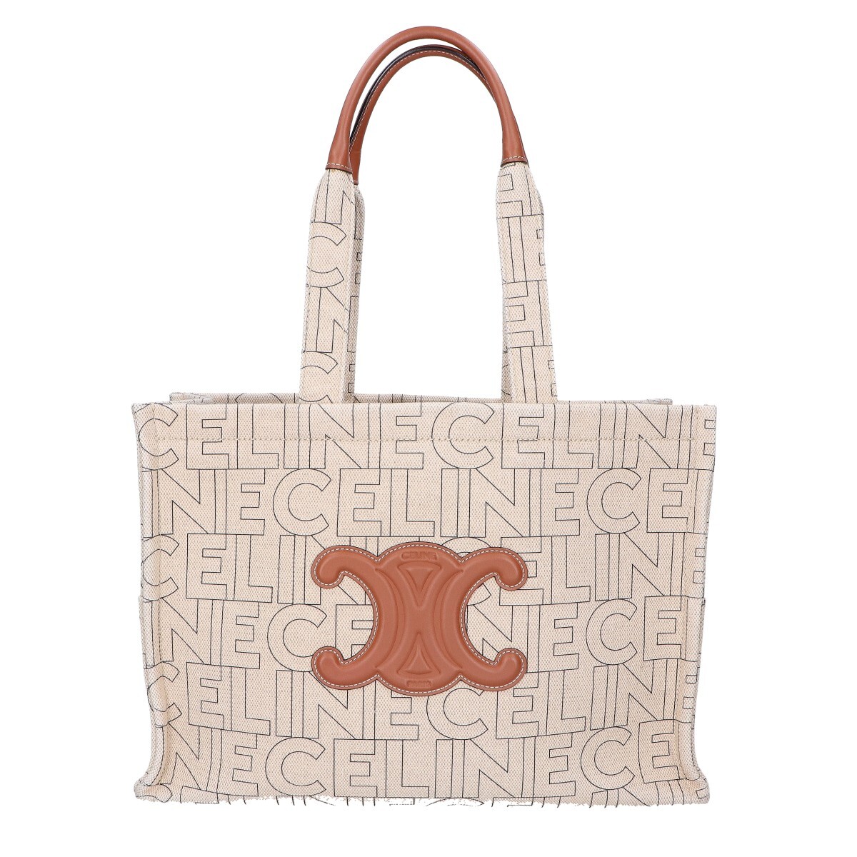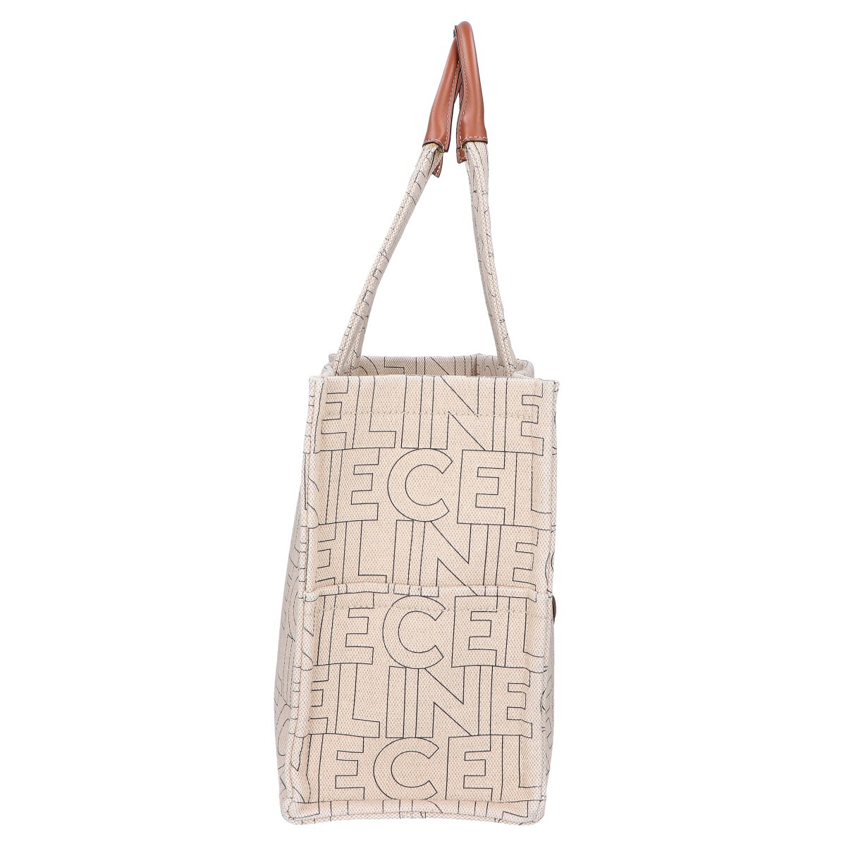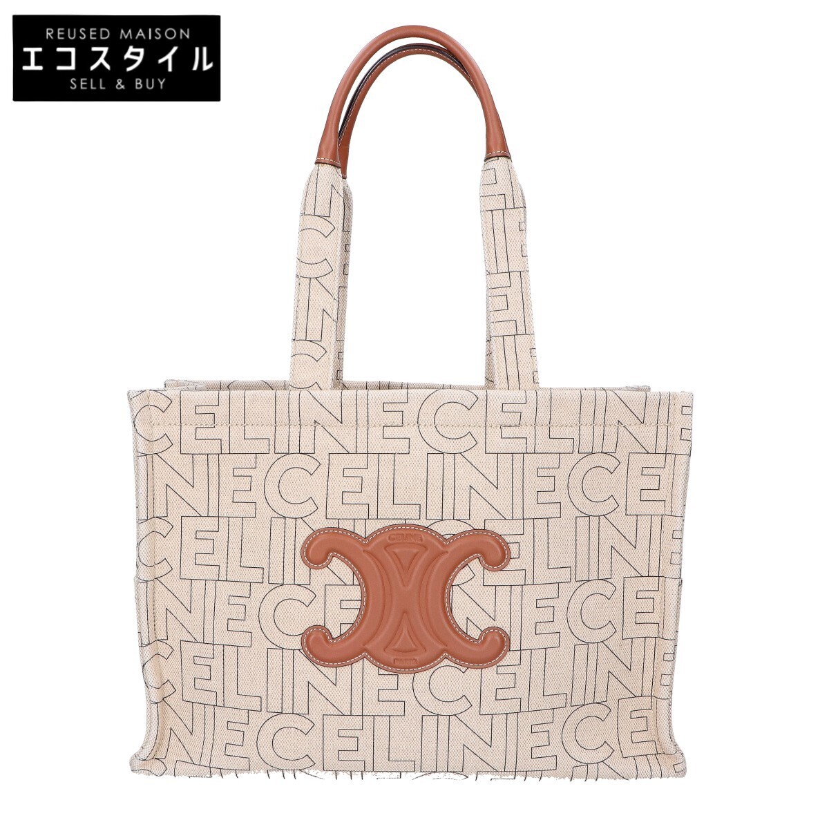 CELINE セリーヌ 196762ERQ キャンバスxカーフ トリオンフ ロゴ総柄 ラージ カバ トートバッグ ナチュラルxタン レディース