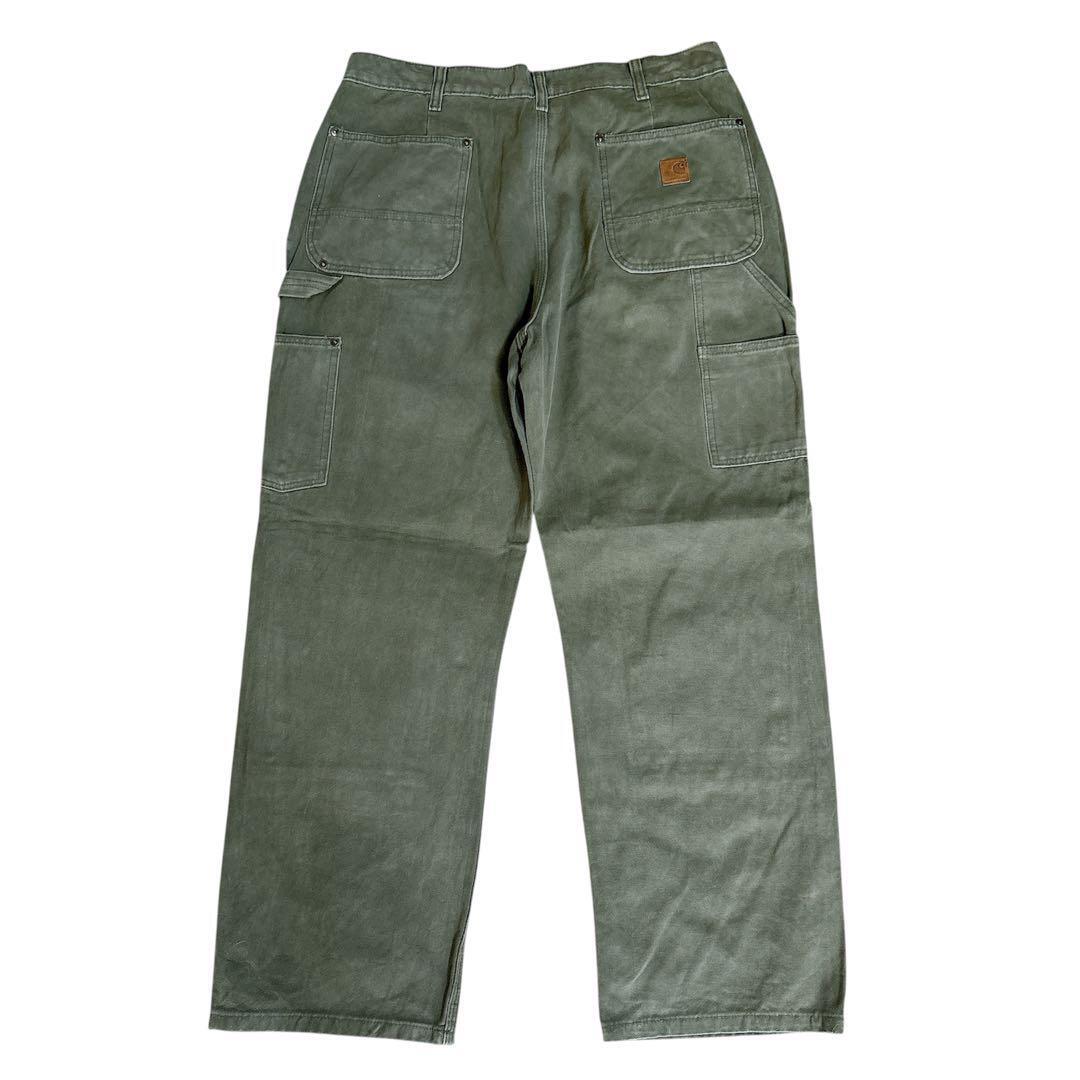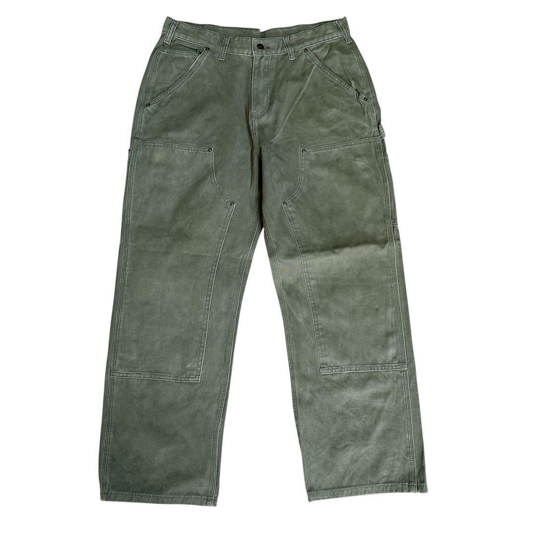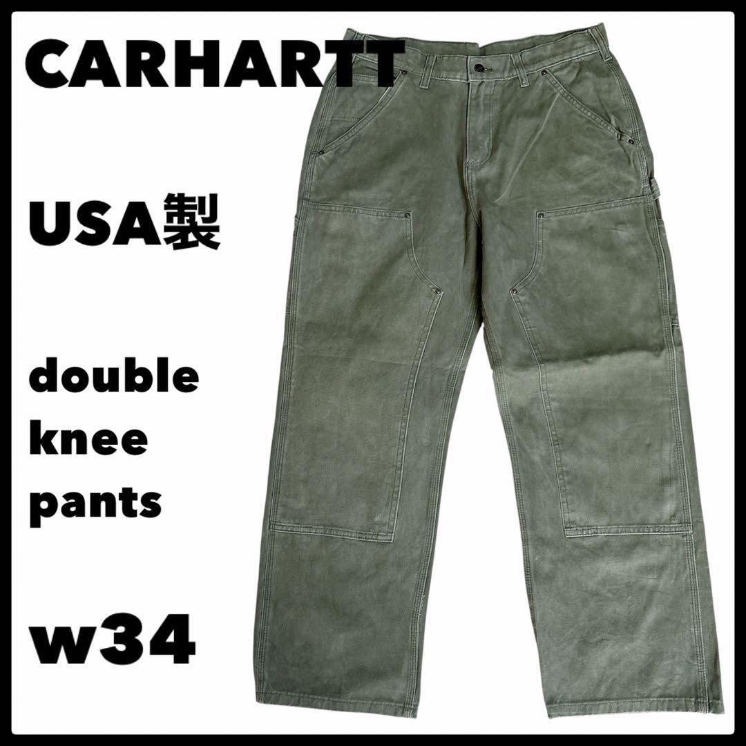 カーハート ダブルニー USA製 ロゴ古 着ワークパンツ w34 オリーブ