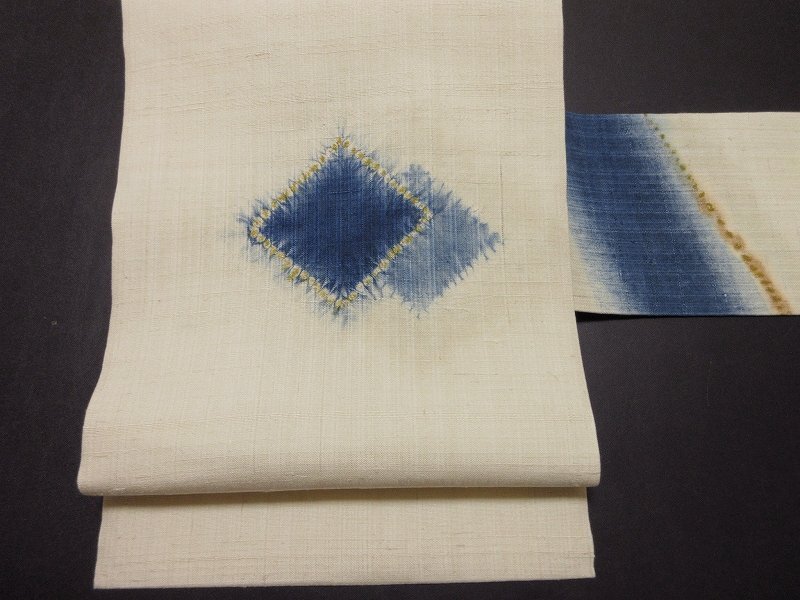 | 商品名 | ドークブア■九寸名古屋帯 紬地 藍絞り染め 三越扱い 極上の逸品 C14 |