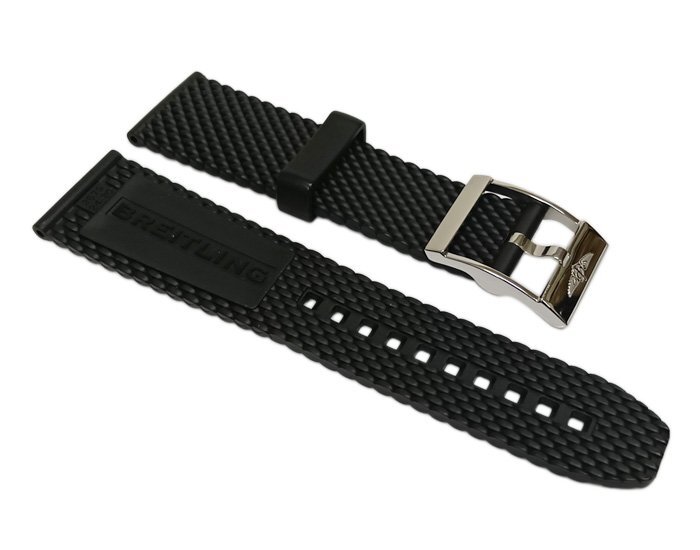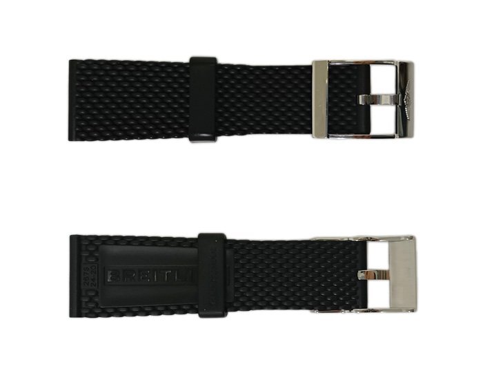 美品 BREITLING ブライトリング ラバーベルト ストラップ 24mm ブラック メッシュ 267S 24-20 純正 尾錠 バネ棒 ベルトケース付
