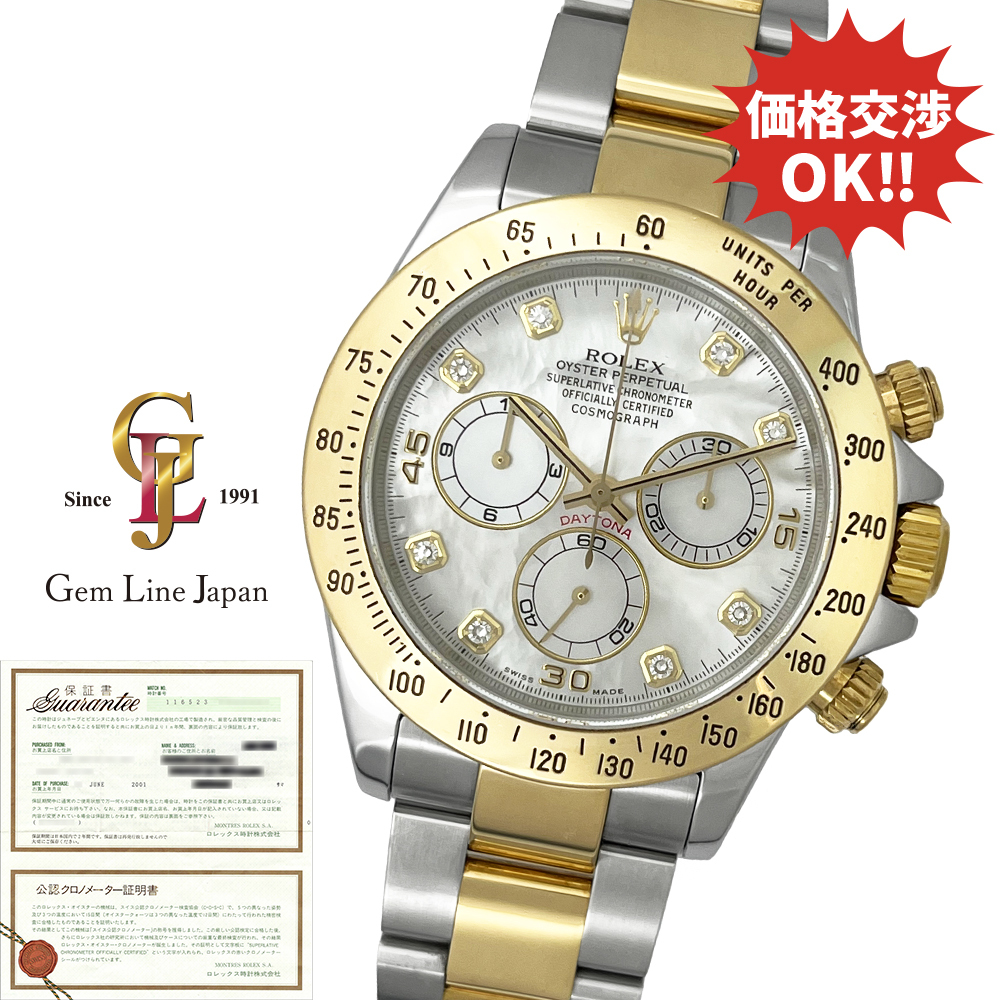 商品名 | ロレックス デイトナ 116523NG P番 YG/SS ホワイトシェル/純正10Pダイヤ メンズ ギャラ付 自動巻 時計 | ||