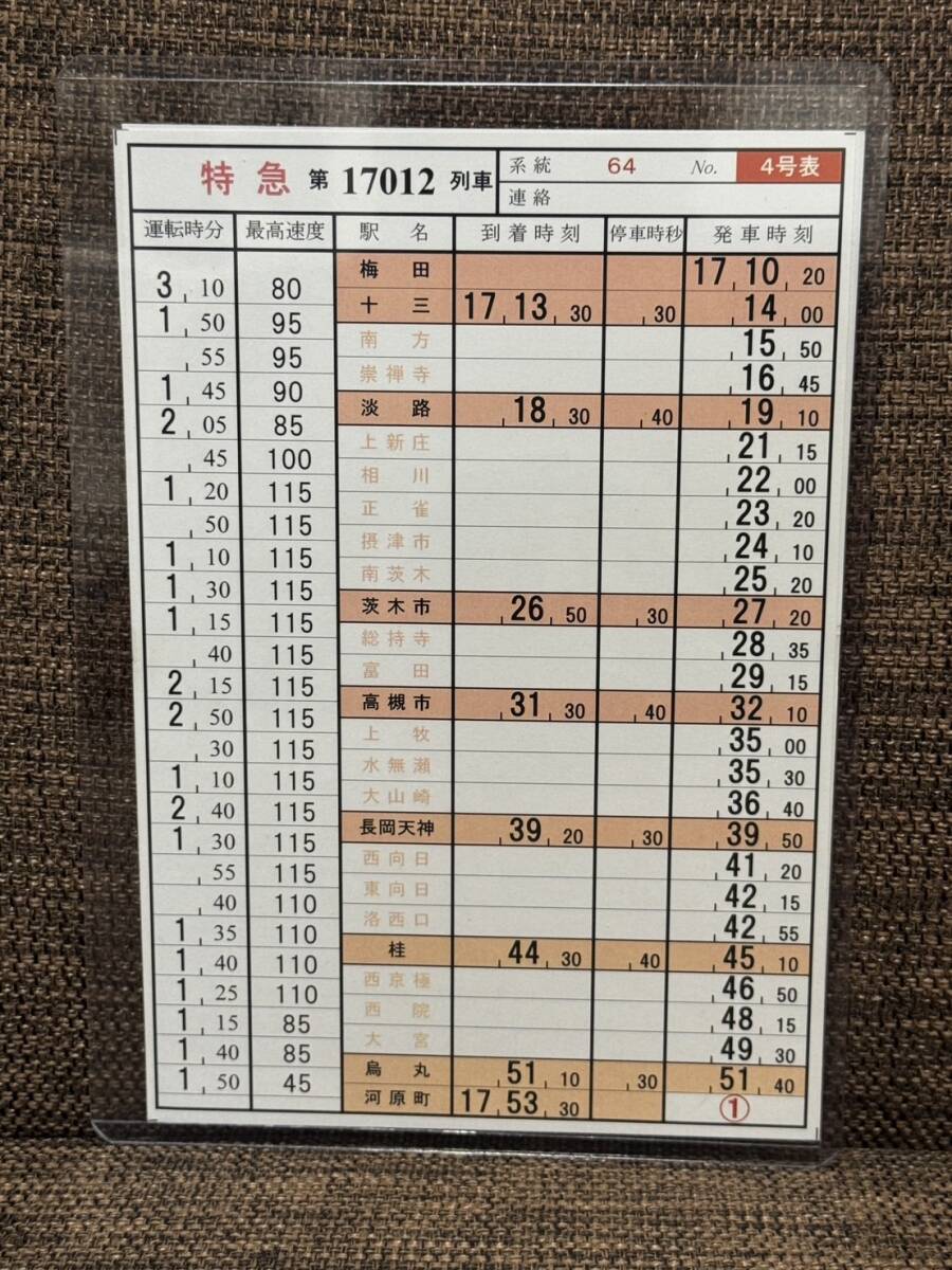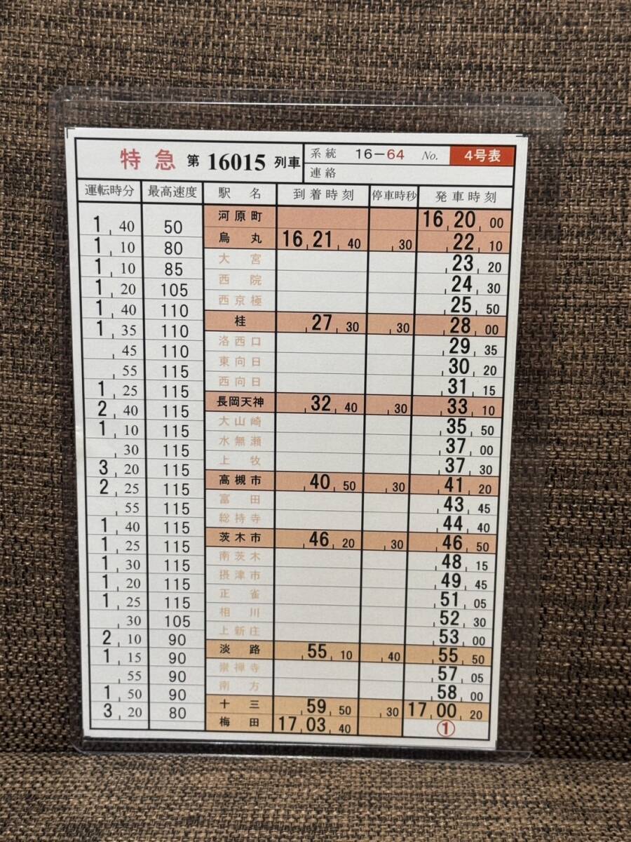 阪急京都線 特急列車 運転士時刻表 4号表 16015