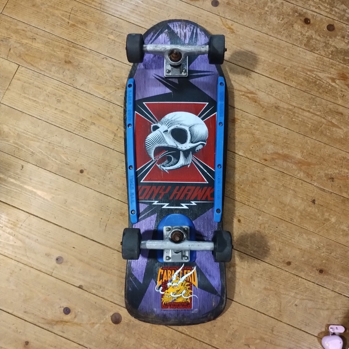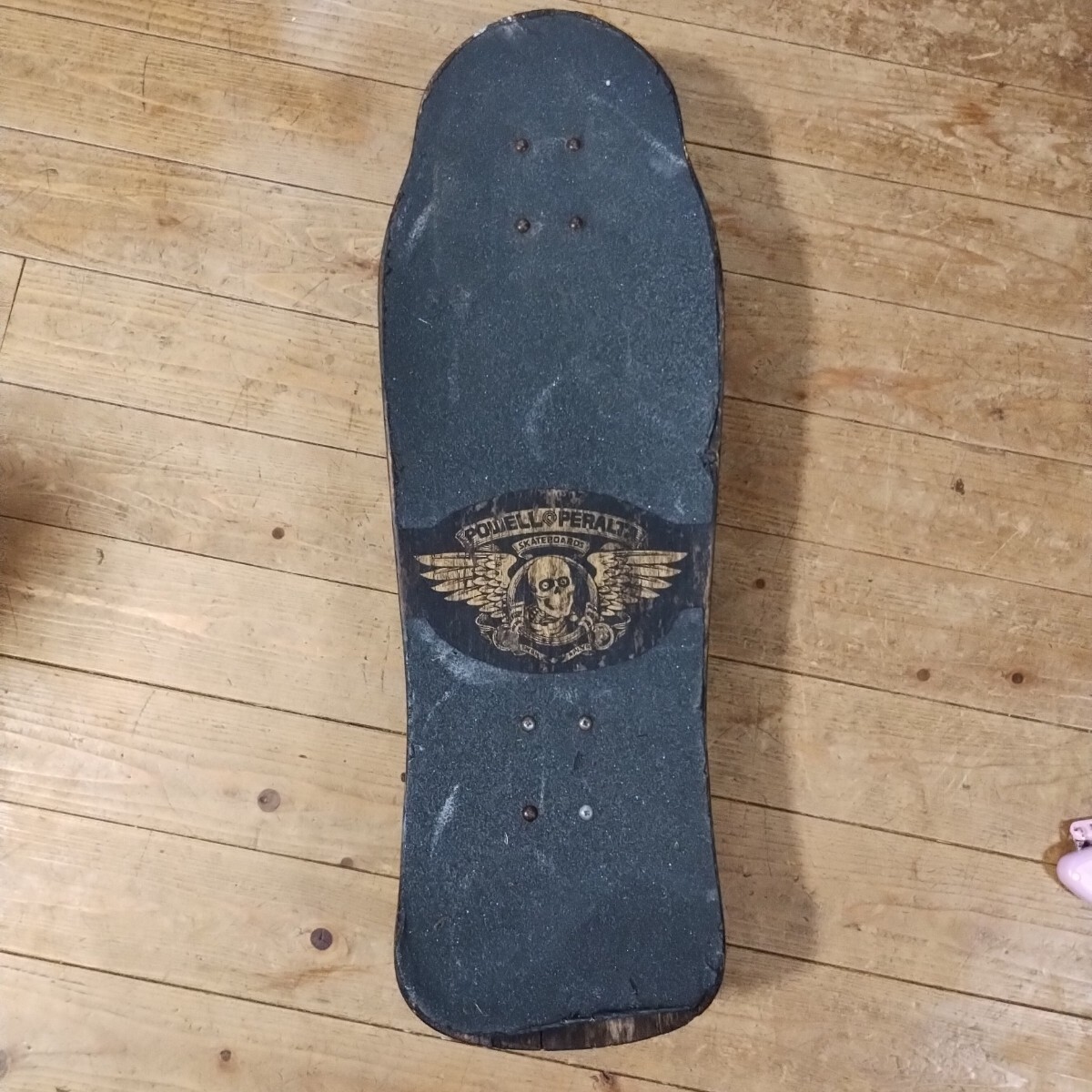 40年程前にスケボー少年だった時に自分で買って使ってました。子供がスケボーしたいといったので見本を見せようとしたら転んで痛くしました。ゴムやベアリングが駄目でした。板も古いです。青春の鑑賞用にいかがでしょうか?