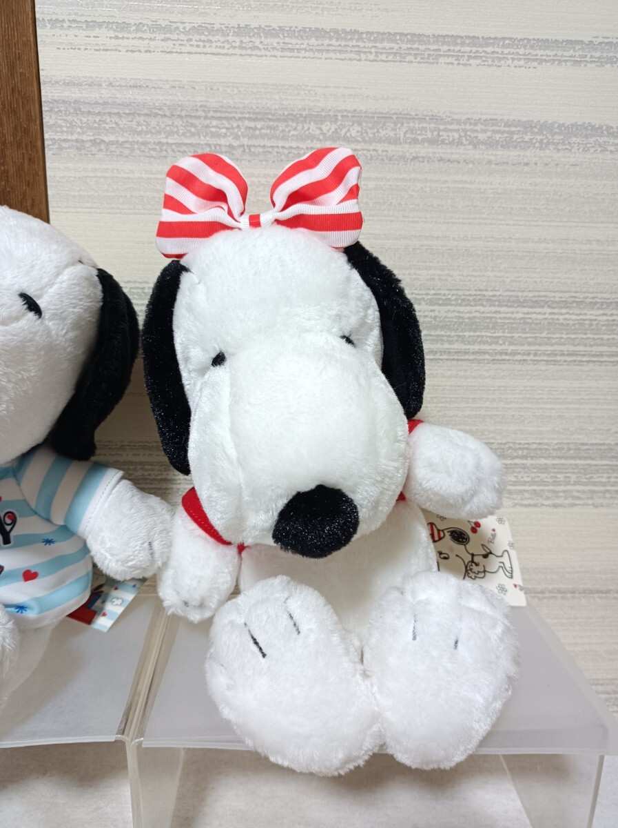 サイズはスヌーピーが座高約23cm、ベルが約26cmです。
