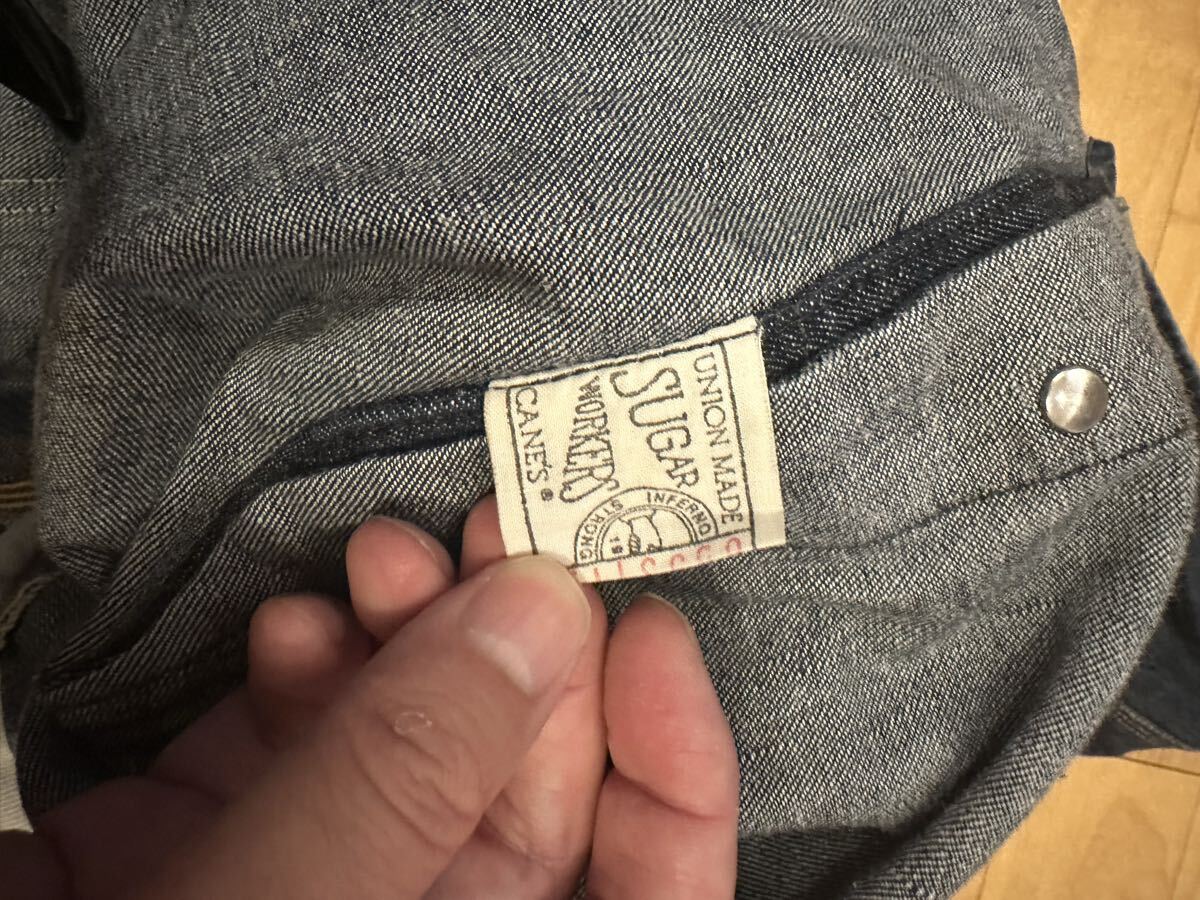 シュガーケーンのローバッグのオーバーオールです。まだ、色も濃いです。