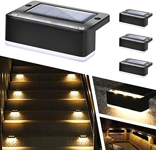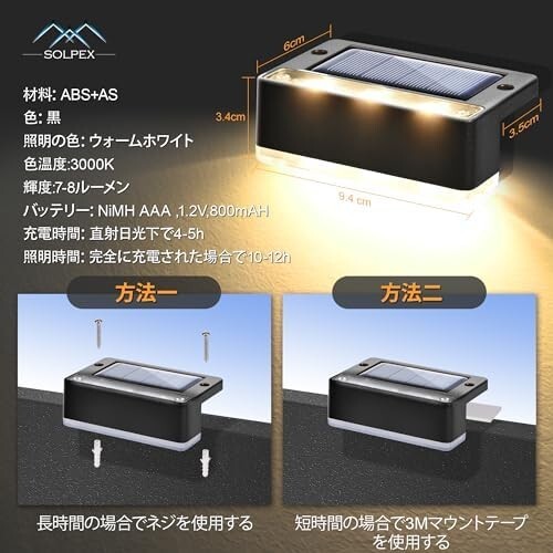 SOLPEX ソーラーデッキライト屋外 4パックソーラーステップライト IP67 屋外階段、ステップ、フェンス、手すり、庭とパティオのための防水ledソーラーライト (ウォームホワイト)