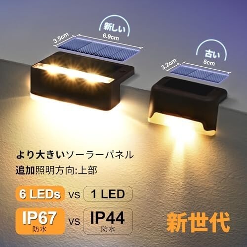 【優れた素材、IP67防水】当社の階段ソーラーライトは、業界で優れた放熱性能を備えた高品質のLED光源チップ、最大93%の太陽光変換率を備えた高品質のポリシリコンソーラーパネルと耐久性のあるABSハウジング、プラスチックプラグスイッチ、ライトセンサー装置で作られます。強風、大雪、砂利、自然災害に耐えることができ、丈夫で耐久性があります。 IP65の防水性能を備えたソーラーライトは悪天候でも対応。破損の心配はありません。安心利用いただけるソーラーライトです。