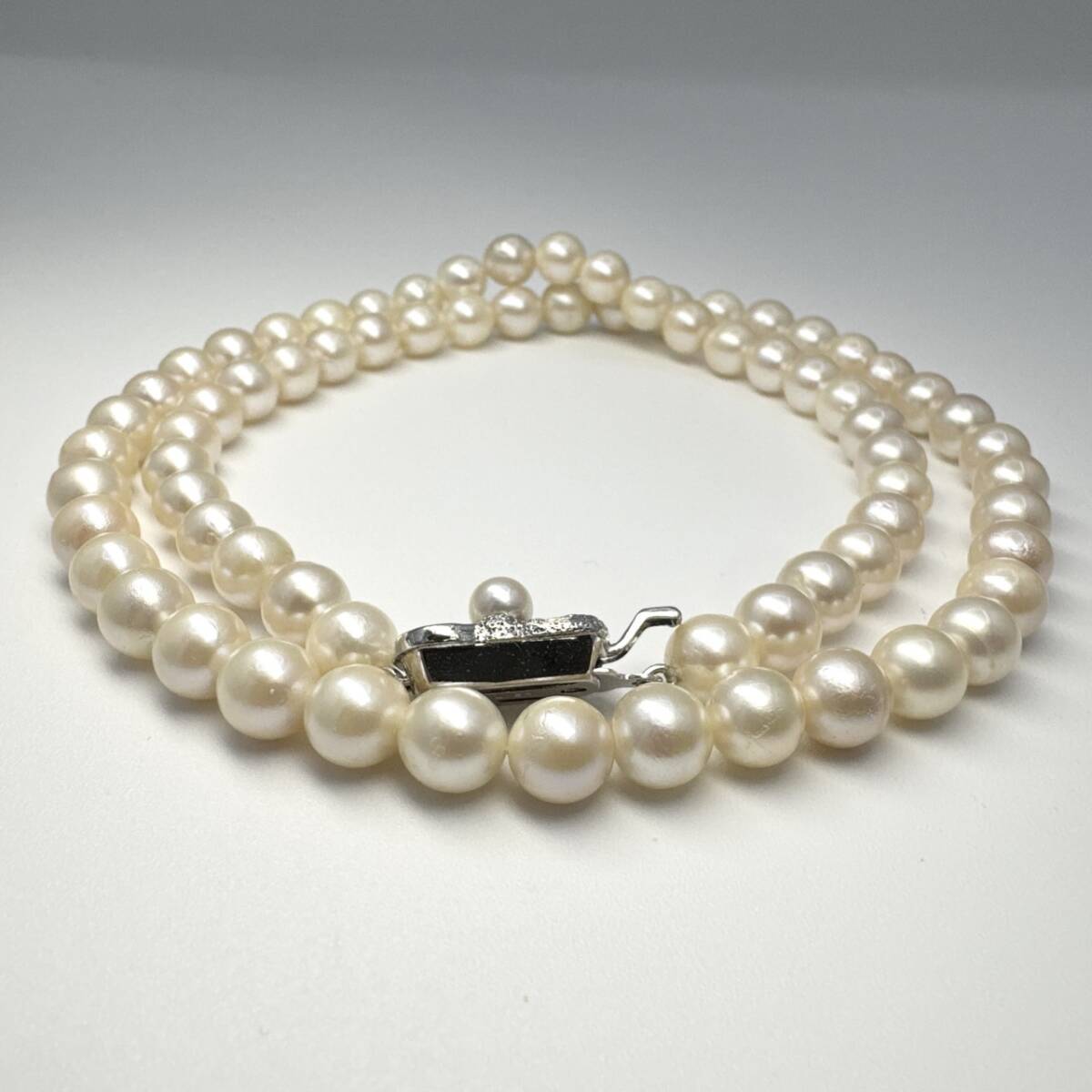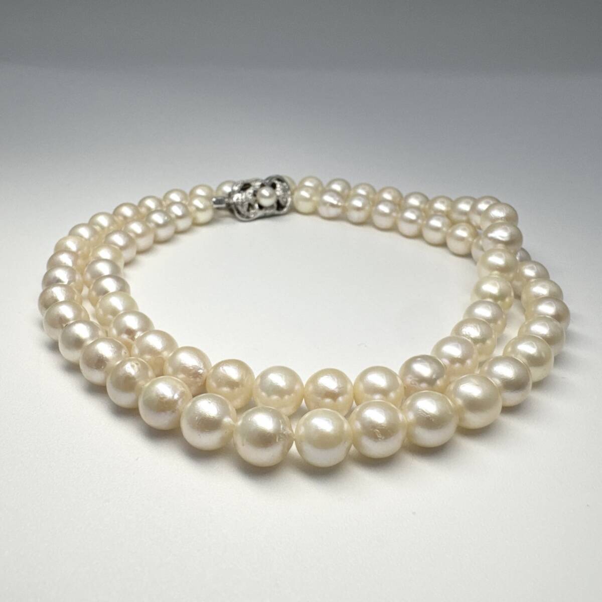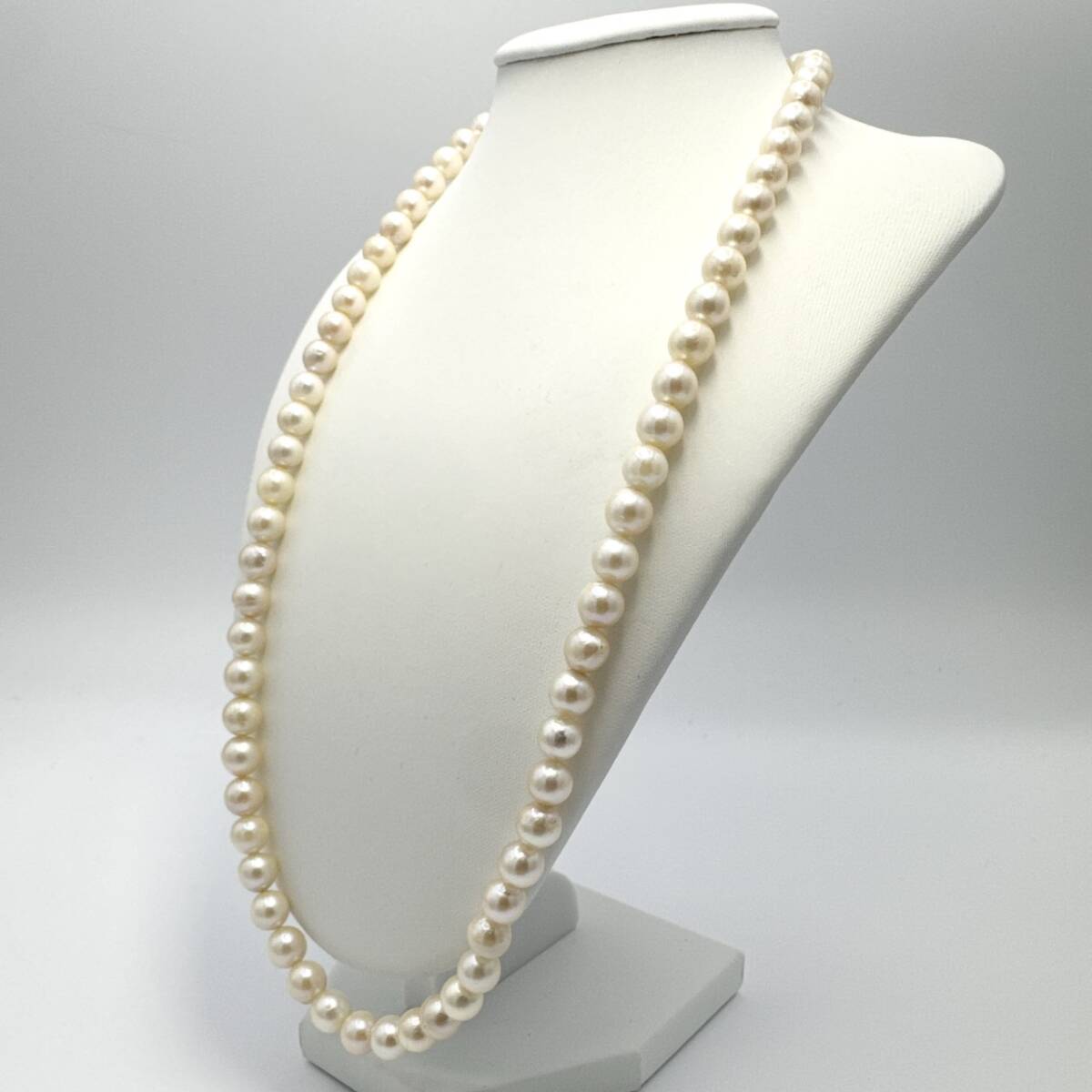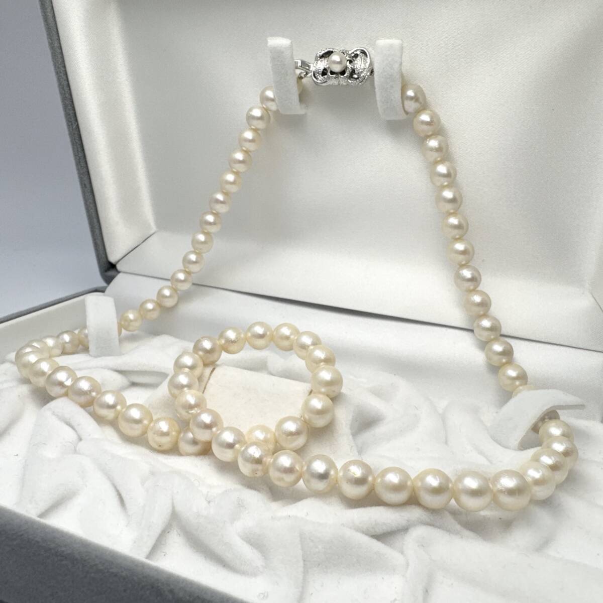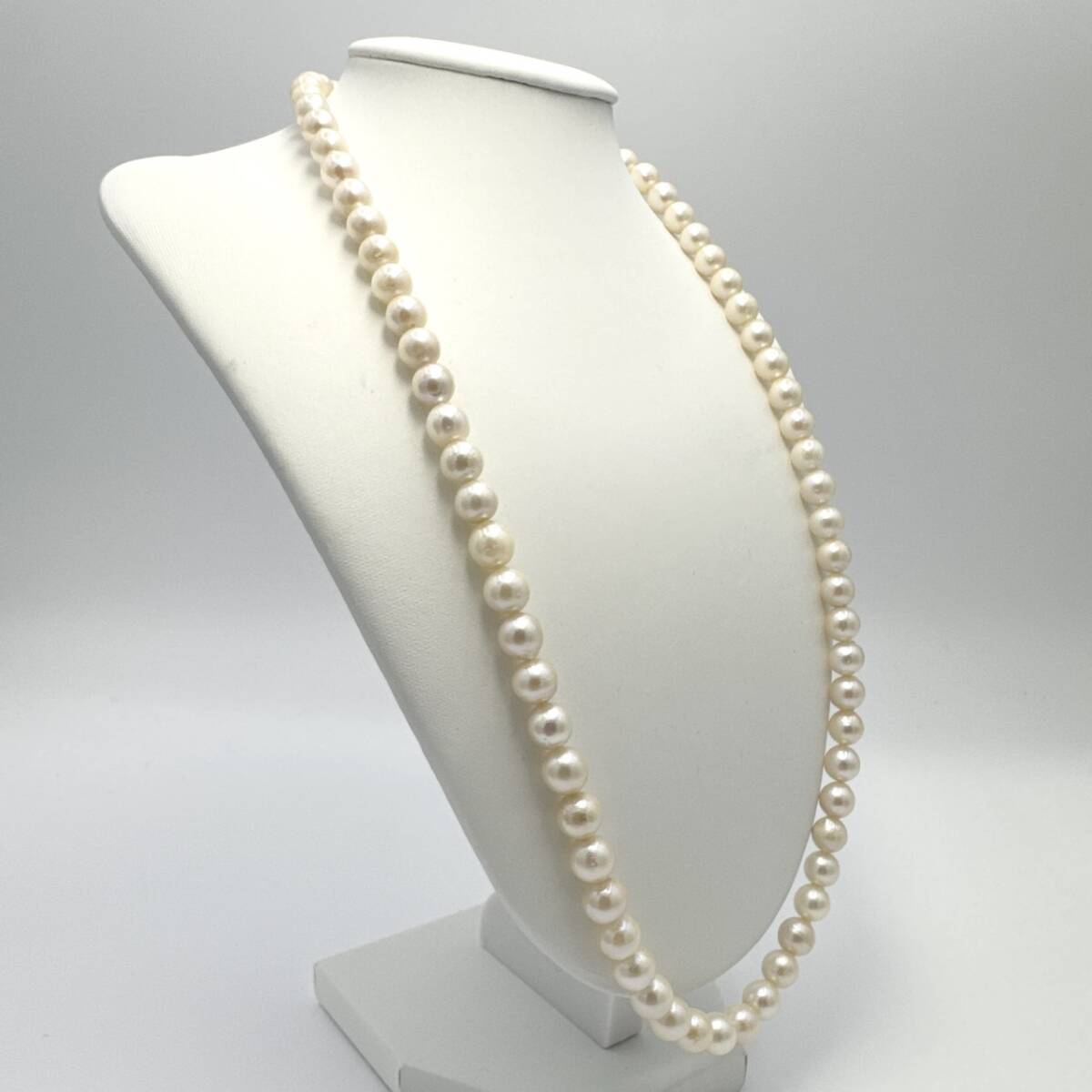【テリ強】 7.1-7.5mm アコヤ 本真珠ネックレス 52.5cm SILVER刻印 39.1g ホワイト/クリーム系 パール あこや ジュエリー 1SEND