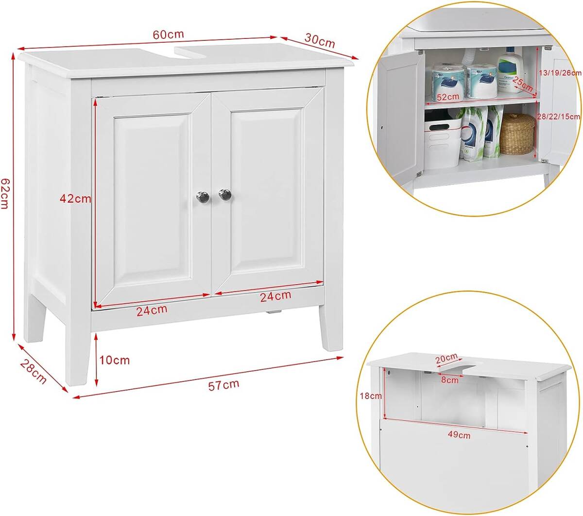 トレンド 洗面台下収納キャビネット 幅60*奥行30*高さ62cm 収納棚付き