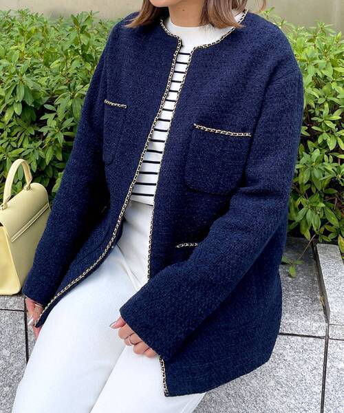 「OPAQUE.CLIP」 ツイードジャケット 38 ネイビー レディース