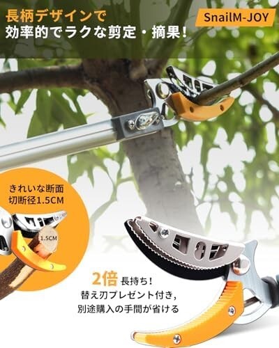 SnailM -JOY 高枝切りバサミ 【日本製 替え刃付き】高枝切り鋏 3段伸縮式 長さ1.4m-3m 軽量 強力 たかえだきりはさみ 鋸付き アルミ柄 SK5高級炭素刃 果樹園 公園 庭園 などに適応 園芸用具 採果 高枝剪定