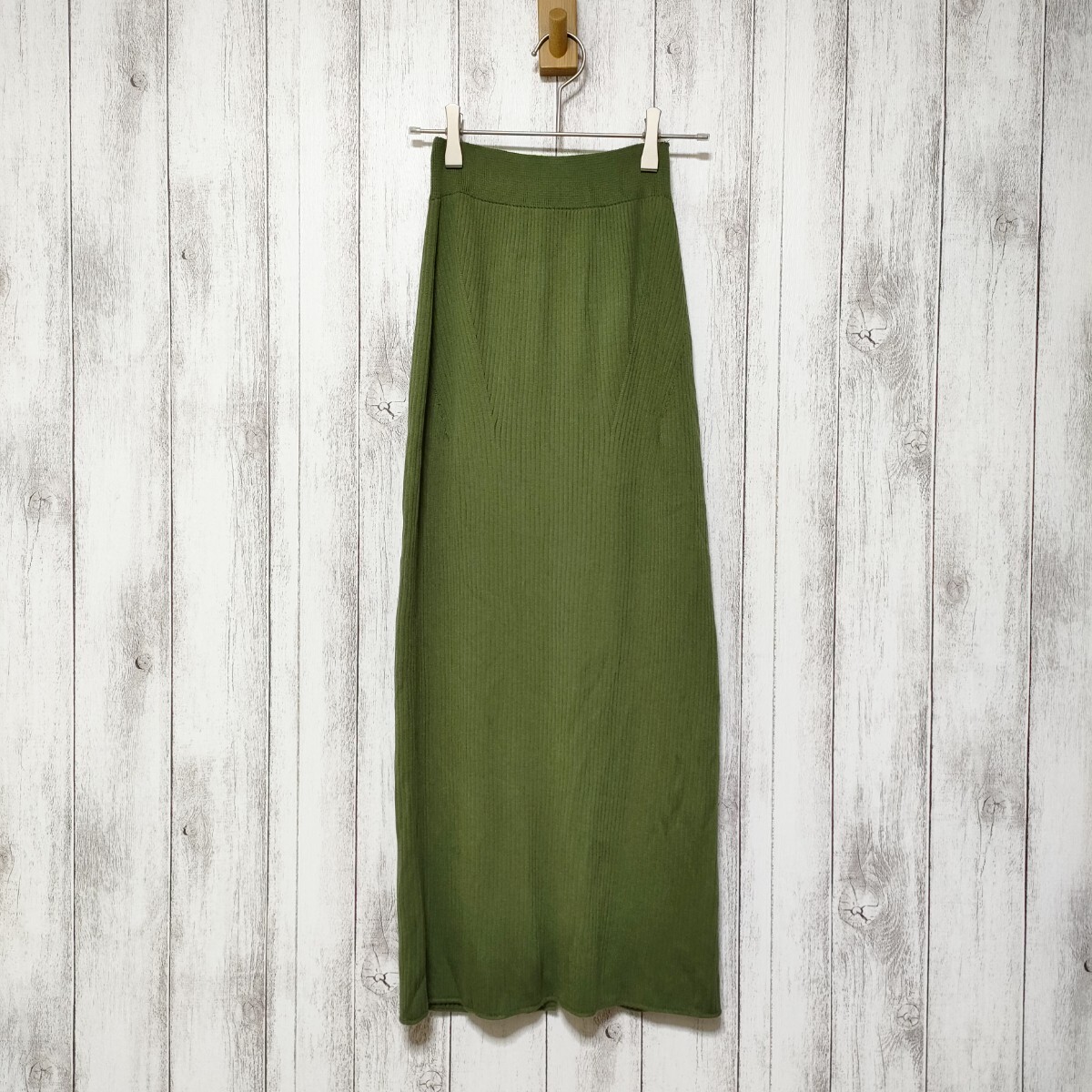 腰まわりのリブを柄のように角度を付けて編み立てて、ラインをよりすっきりみせてくれるような視覚効果を演出。