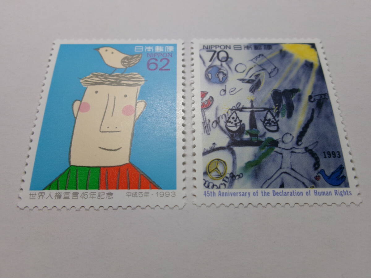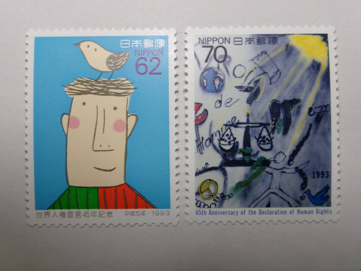 1993年 世界人権宣言45年 2種類 132円 未使用 記念切手
