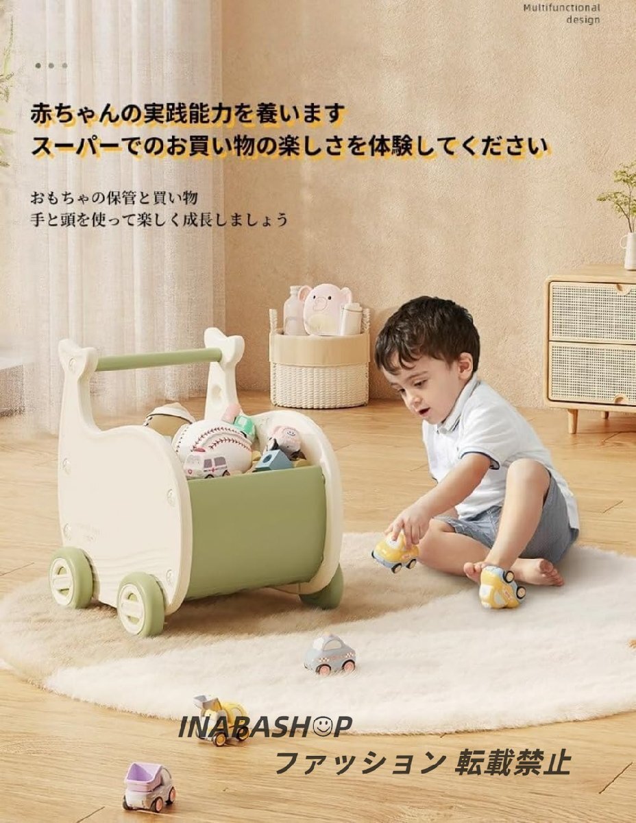 【大好きなおもちゃを積んで歩く練習】ゲームをしたり、好きなおもちゃを入れたりして運んだり、つかんで歩く練習用として使ったり、室内専用のおもちゃ箱として使ったりすることができます。タイヤは室内で遊んでも床を壊すことはありません。