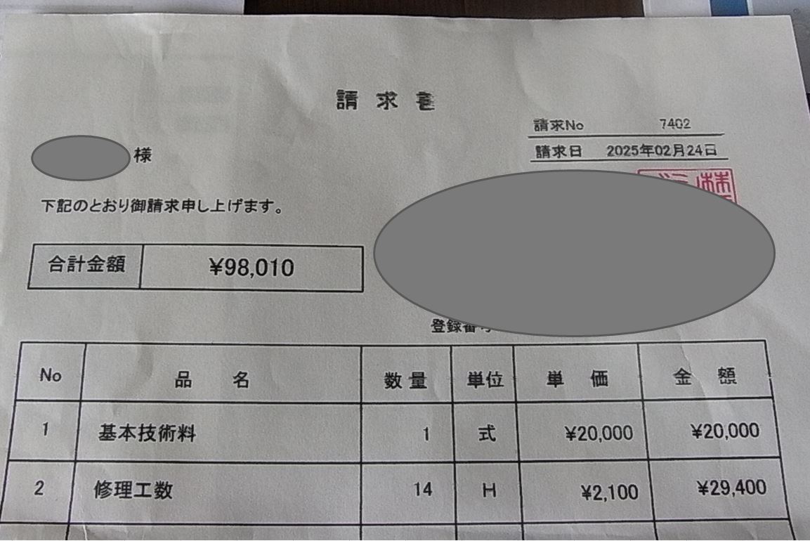 【その他】 ・2月にメンテナスした時の明細書/領収書(コピ-版)