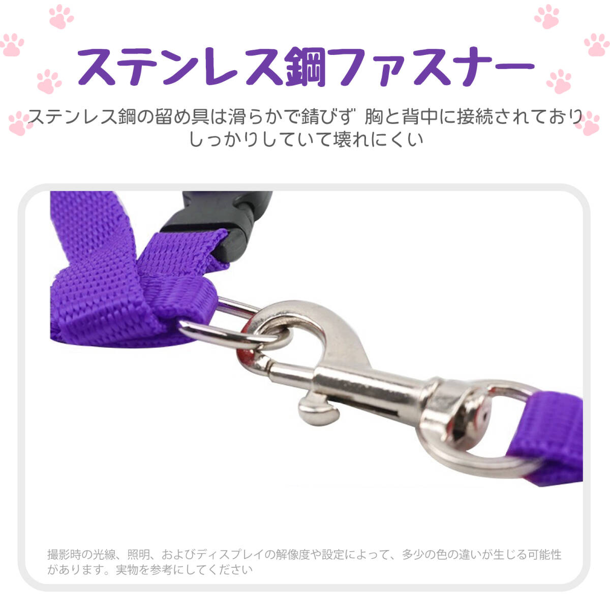 | ご注意 | 1.初めて外出する際は、猫をできるだけ静かな場所で連れ出し、猫が外部環境に慣れるようにしてください。 2.猫は特殊な性質を持つため、着用を拒否することがあります。家の中で数回試して、猫が着用に慣れるようにしてください。 3.猫が胸背ハーネスの着用に慣れたら、伸縮リードを使用して、猫の活動範囲を広げることができます。 |