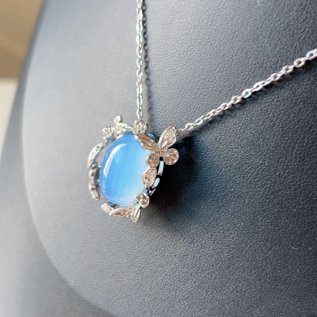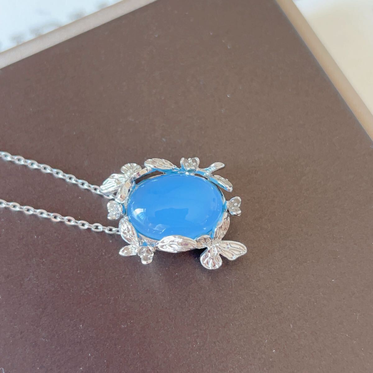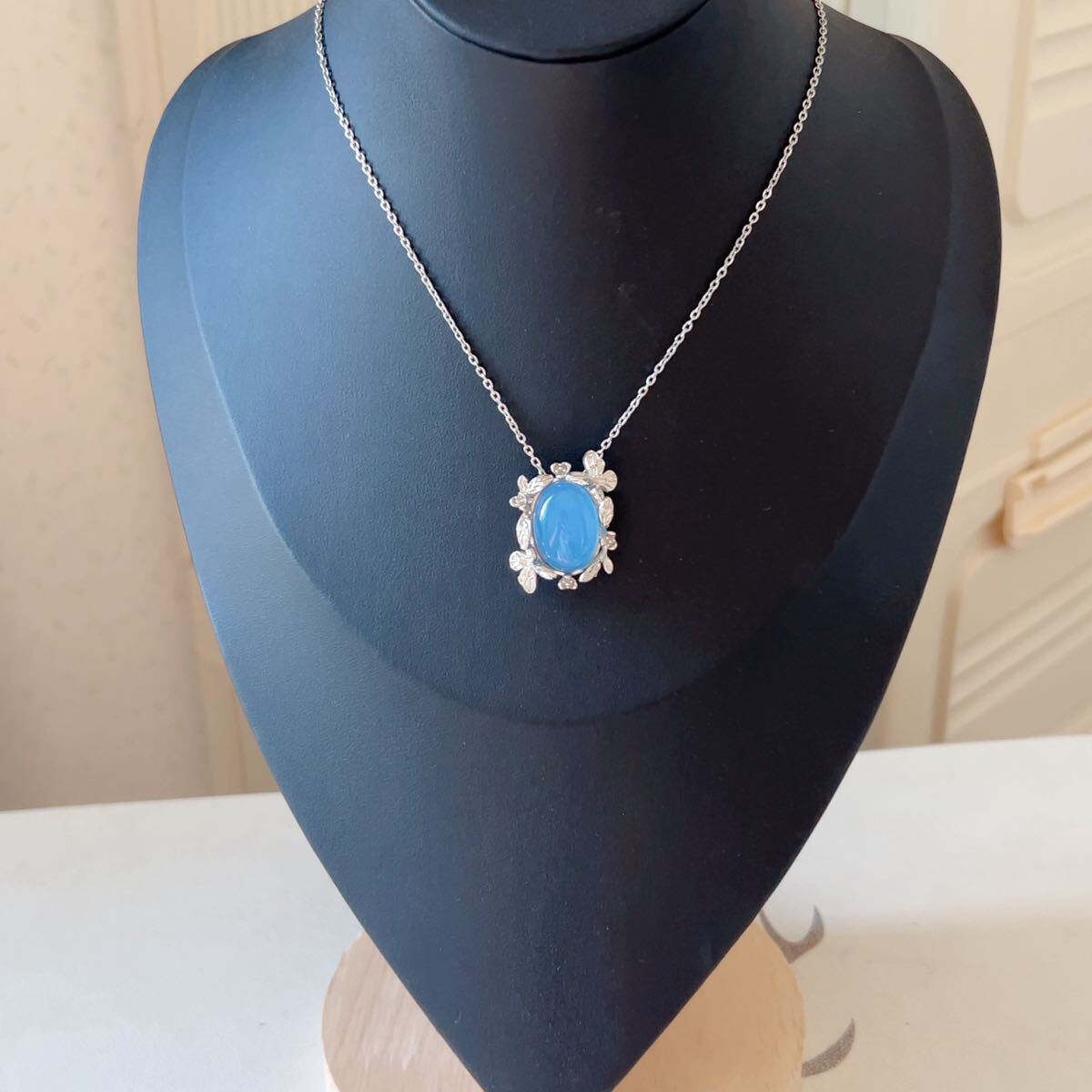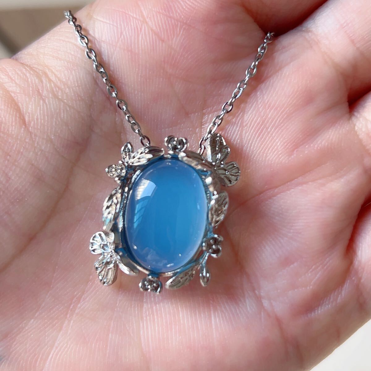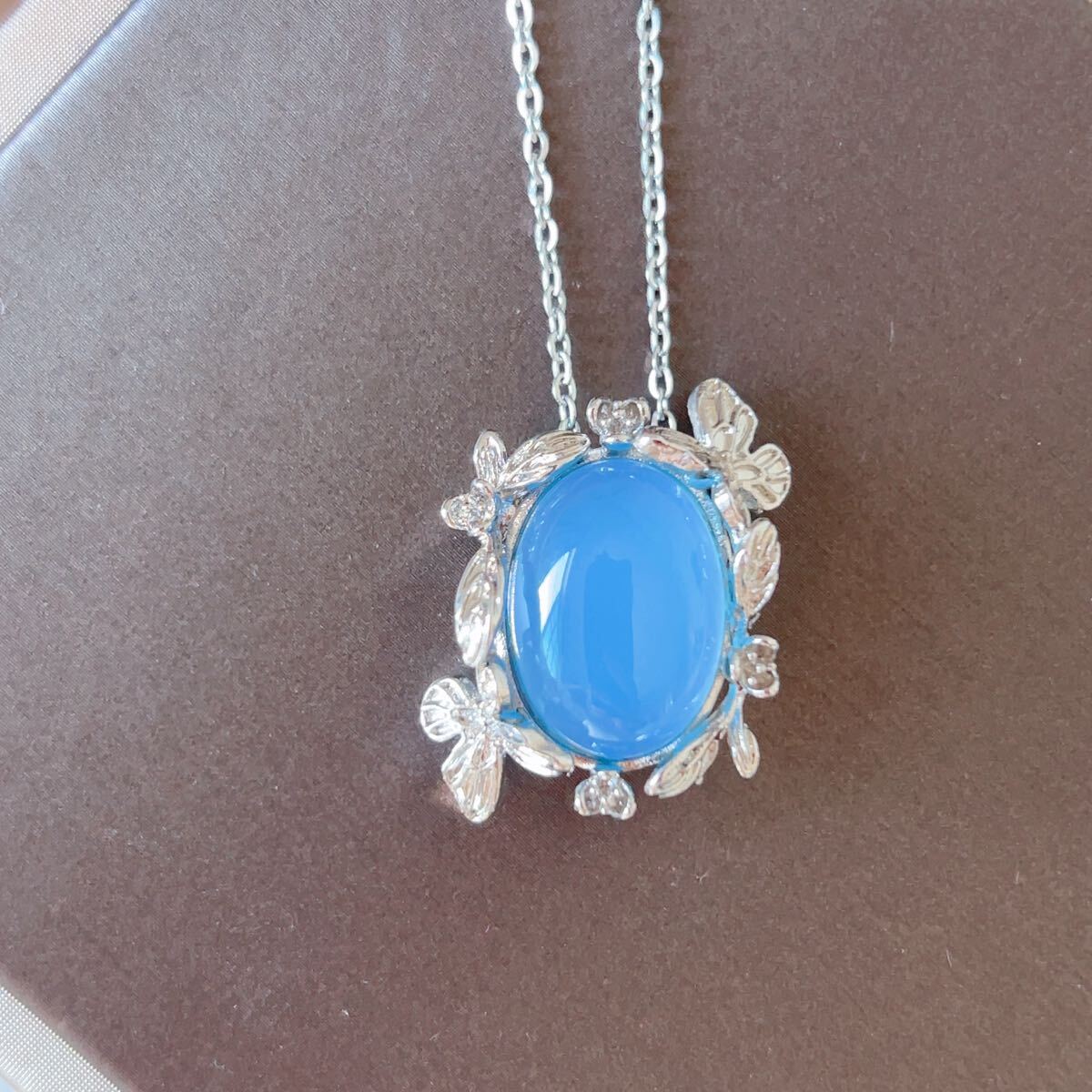 ◇ブルーメノウ◇青瑪瑙◇アゲート◇ネックレスペンダント◇パワーストーン◇天然石◇巾着袋付き◇プレゼントにも◇039P91519