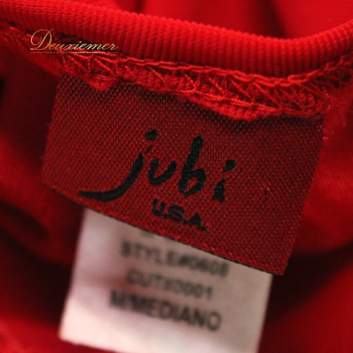 | 【商品名】社交ダンス衣装 トップス 【サイズ】 平置き実測:総丈約50cm(裾の一番長い所~肩部まで)、肩幅約36cm、身幅約39cm、ウエスト約33.5cm~ ※実測の為、多少の誤差はご了承ください 【仕様】 ・伸縮性有り ・肩パッド無し ・胸パッド無し ------------------------------------ 【ポイント】 ▽jubi U.S.A. ▽レッド×ブラック ▽胸元の花柄レースがアクセント ------------------------------------ 【撮影時使用トルソー】 種 類:女性用トルソー9号 (一般的に使用されるサイズです) サイズ:肩幅約37cm、バスト約88cm、ウエスト約66cm、ヒップ約89cm |
