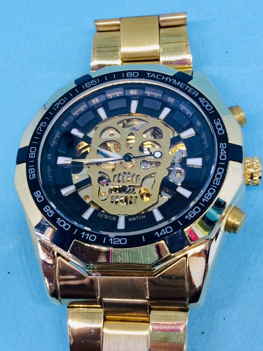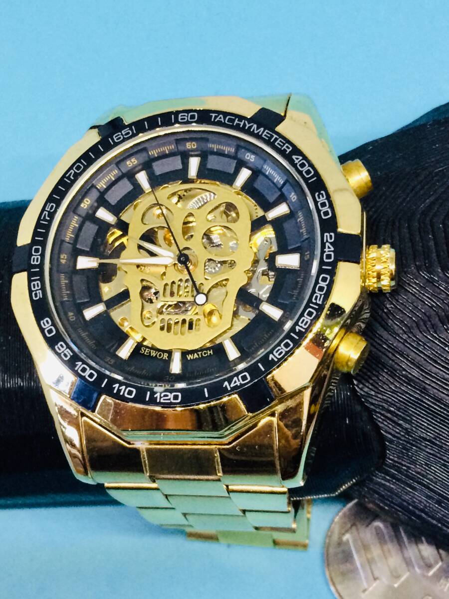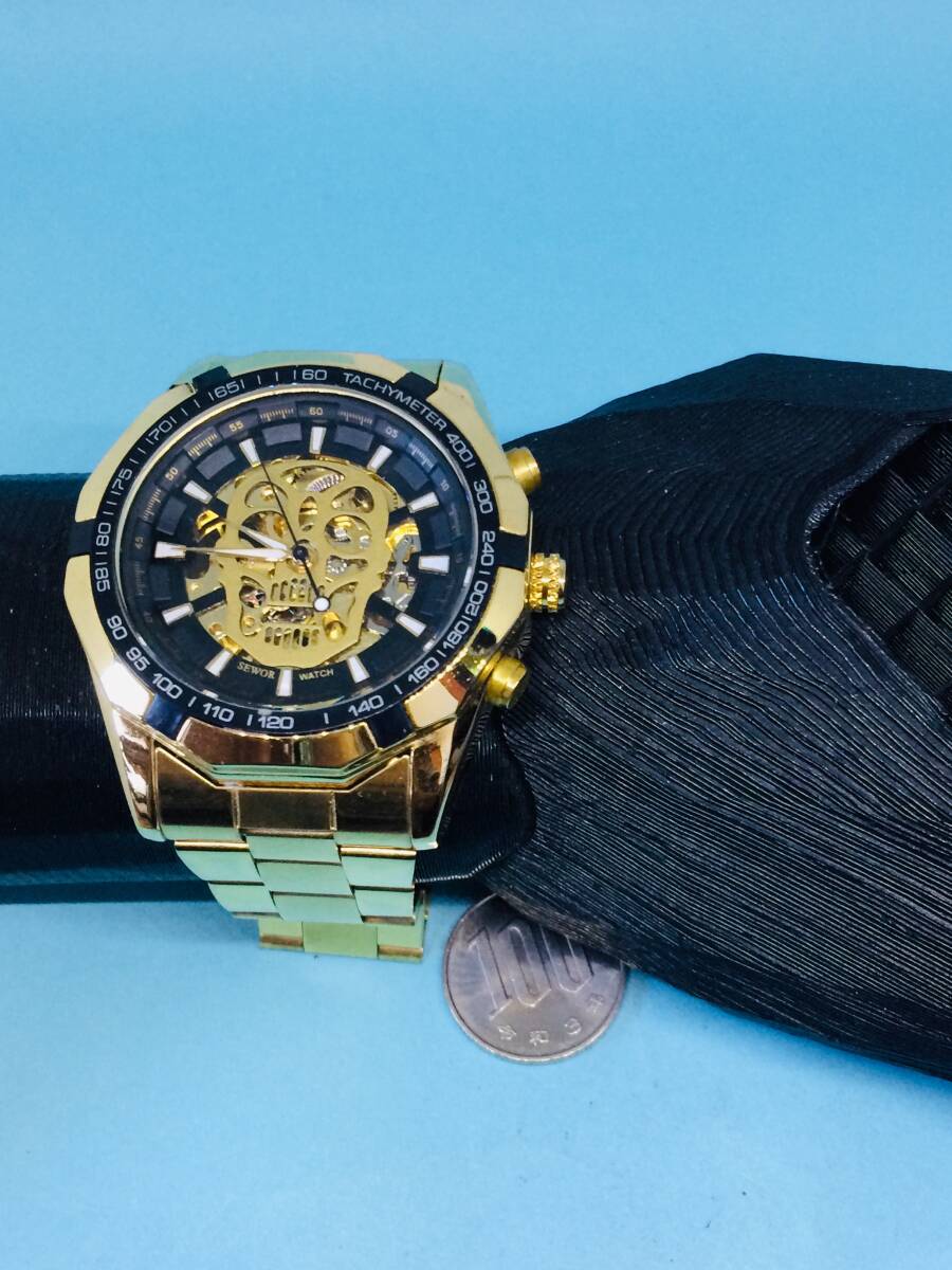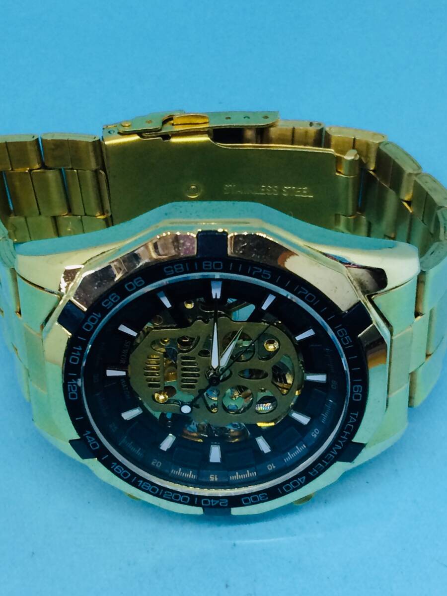オートマチック・スカル・スケルトン・ゴールド・メンズ腕時計USEDです。