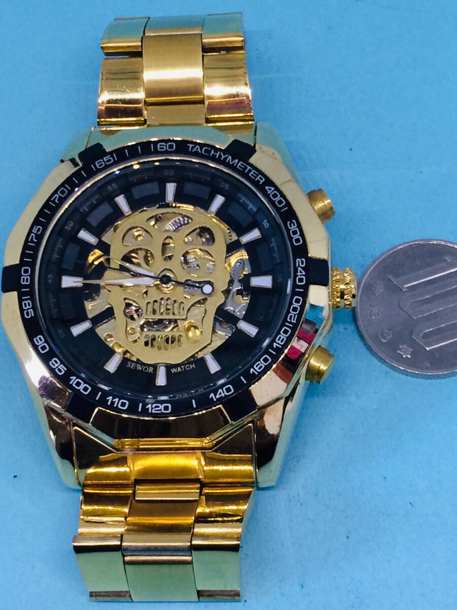 (k23)オートマチック(*'▽')スカル・スケルトン(クリーニング済み)ゴールド・メンズ腕時計USED(送料全国一律185円)コレクションに。