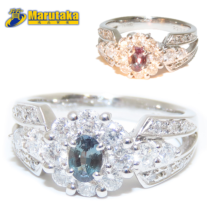 商品説明 | アレキサンドライトとダイヤモンドがセッティングされたプラチナリングです。カラーチェンジも美しいアレキサンドライトが映える逸品です。 |