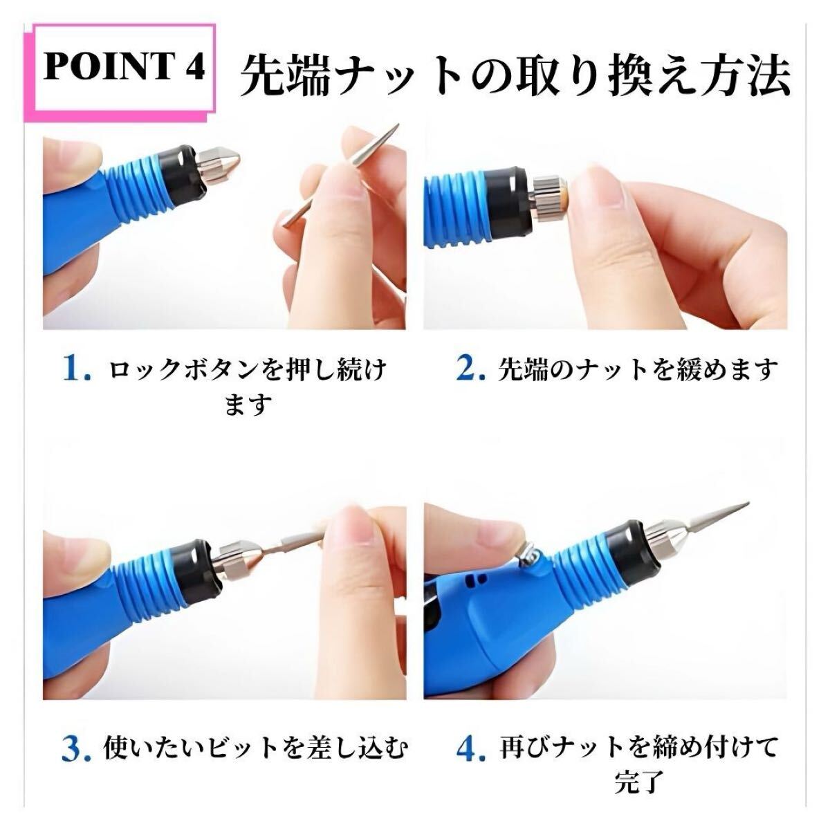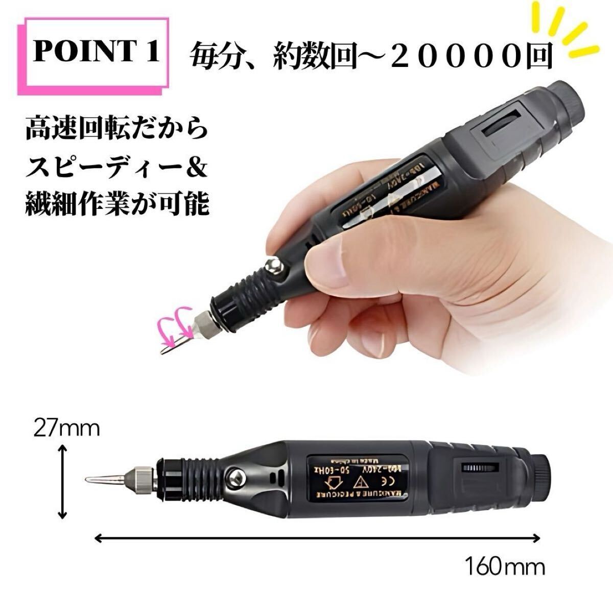 毎分最大20,000回転という高速回転を実現し、プラスチック・木材・ガラス・金属・ネイルなどの研磨、彫刻、削り、穴あけ、磨きまで幅広く対応!